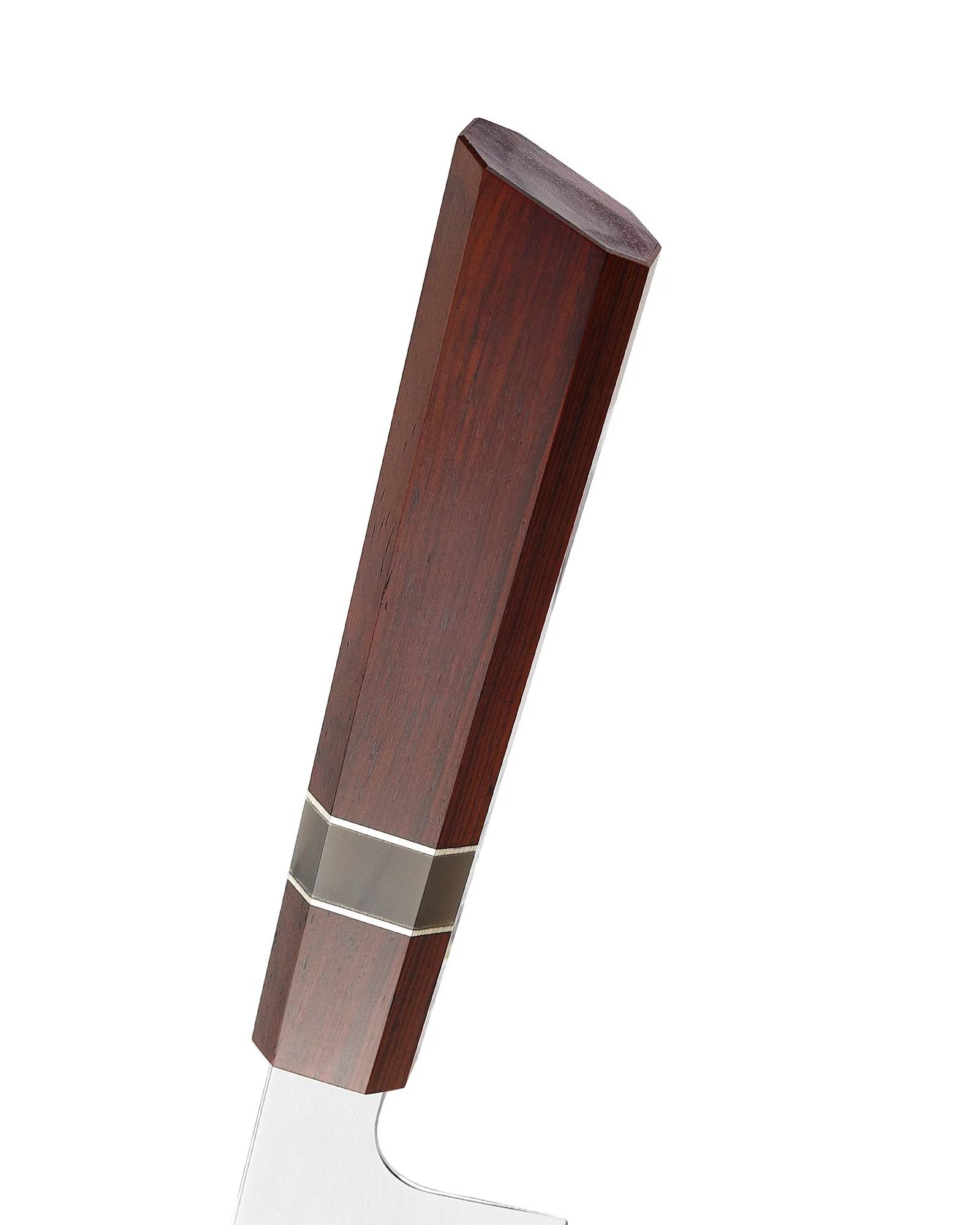 手柄采用纯多折结构设计,采用白色水牛角、玫瑰木和镍银接缝。凭借优雅的设计,整个车身采用全柄结构,以实现最佳平衡和最长的耐用性。