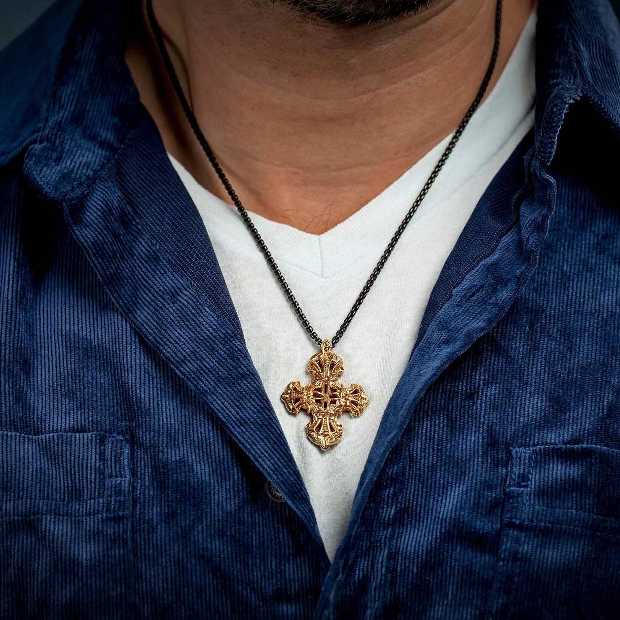 细节 Pax 是一款精美雕刻的十字架项链,其图案和纹理灵感源自中世纪盔甲。这款小巧的项链既可单独佩戴,也可与其他项链叠戴,打造符合您个人风格的造型。Pax 采用 18K 纯金打造,搭配直径 1.5 毫米的...
