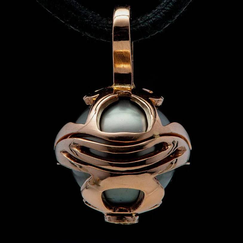 细节 说实话,我们都需要多一些智慧。这款吊坠是“拥抱”系列的经典之作,它以一颗美丽的天然南海珍珠为中心,镶嵌于18K玫瑰金底座之上,搭配精致的皮革绳,并饰以纯银“箭头”形T形扣。珍珠与皮革的色调...