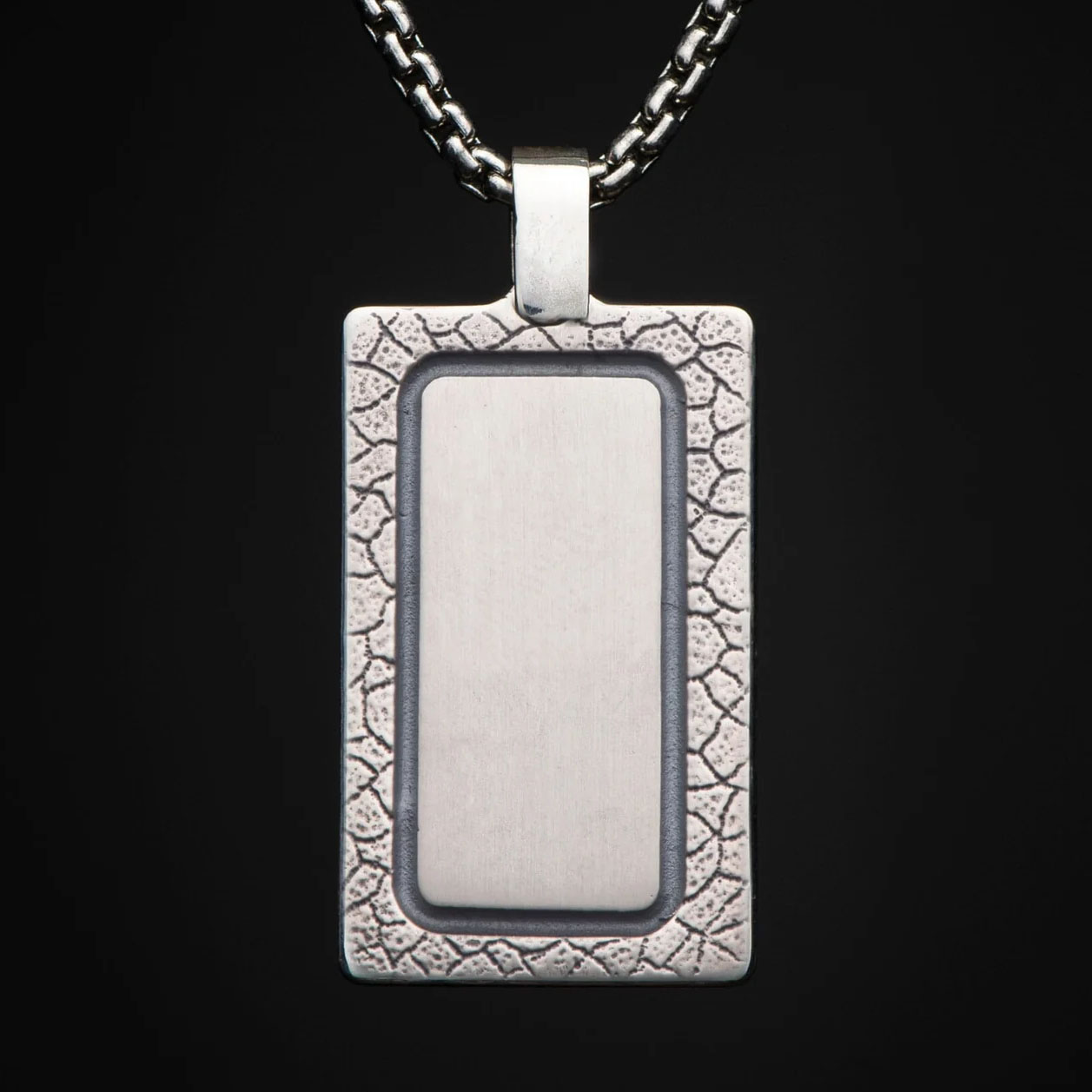 大马士革巅峰吊坠——金属与金属的碰撞,呈现出大胆而低调的对比。吊坠镶嵌着查德·尼科尔斯手工锻造的“无畏”大马士革钢,优雅的纯银底座搭配复古纯银链。背面留有镌刻空间,可镌刻永恒的铭文。