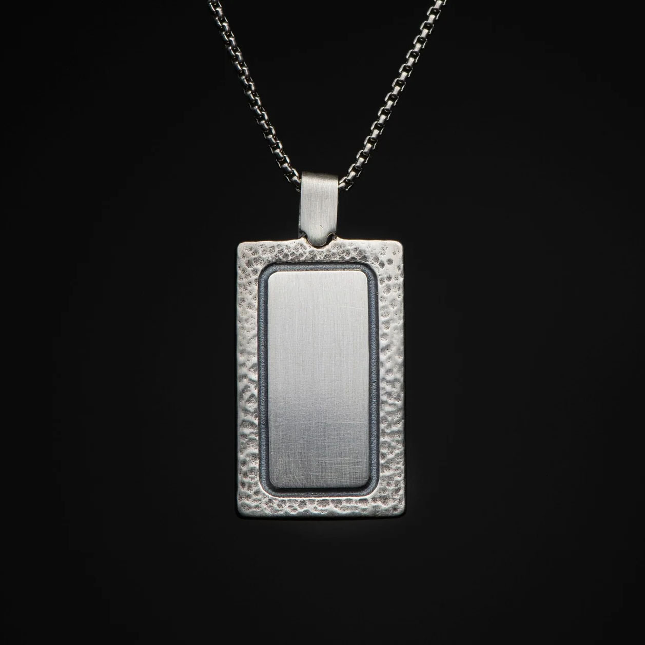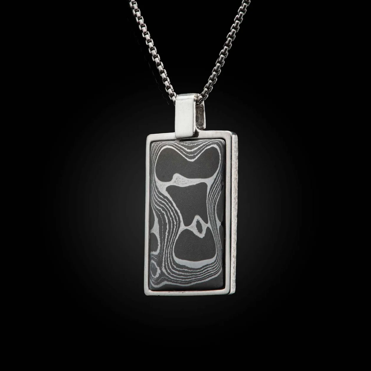 金属与金属的碰撞——大胆而不失低调。手工锻造的“无畏”大马士革钢,每一处切割都独一无二。它镶嵌在优雅的纯银吊坠上,并搭配一条复古纯银链。背面留有镌刻空间,可镌刻永恒的铭文。