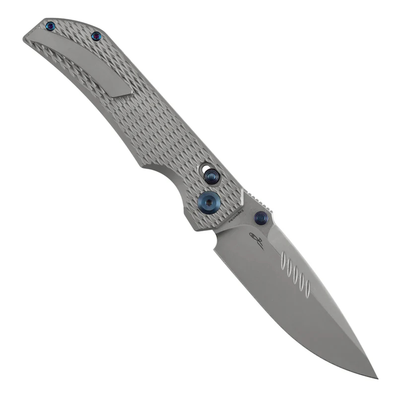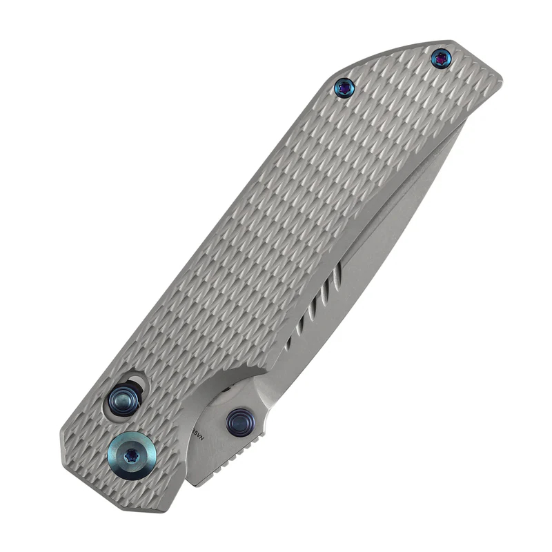 符合人体工学的钛合金手柄,带有精致的菱形图案,确保握持稳固、防滑,在各种环境下都带来舒适与控制。美学与品质完美融合,极具收藏价值!