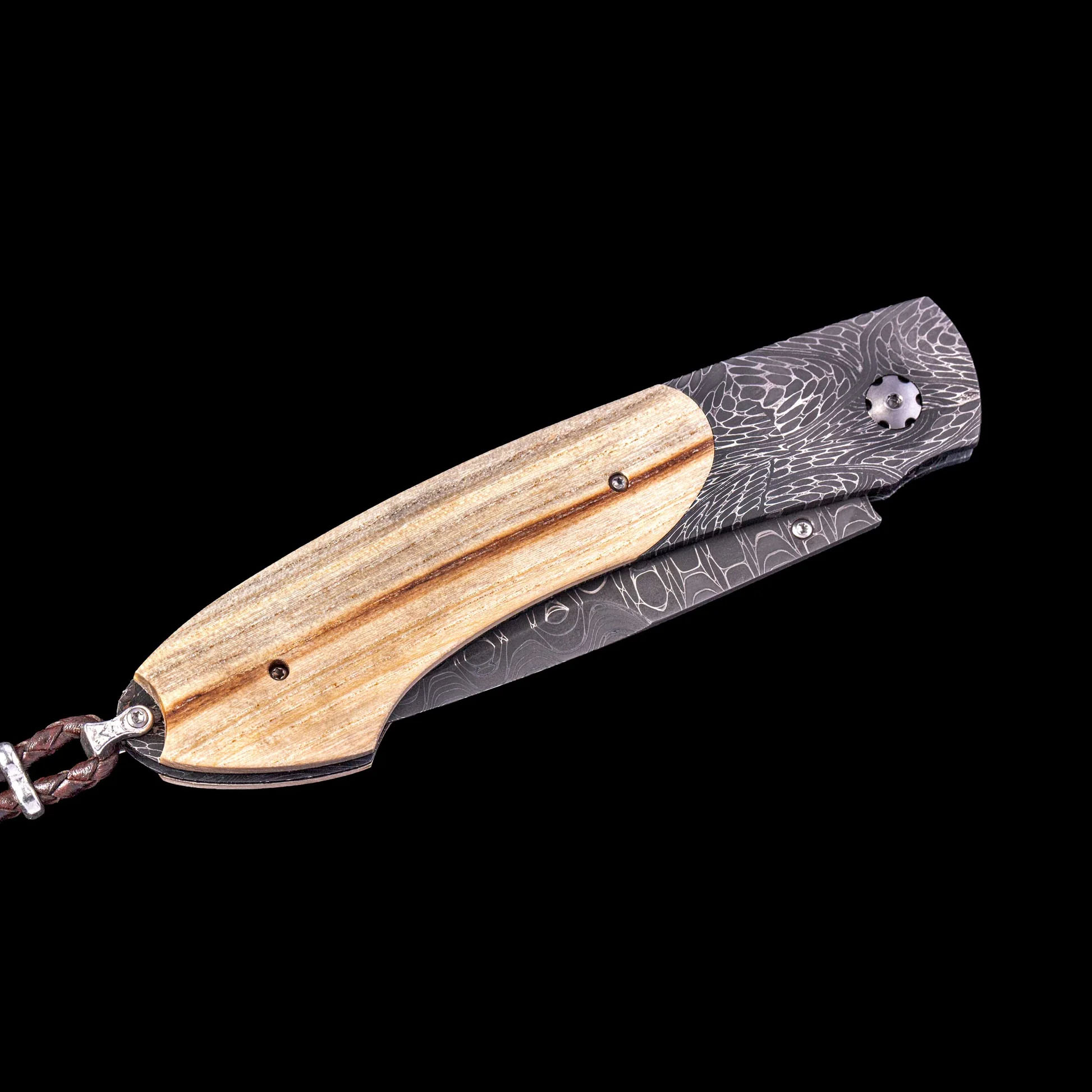 细节 独一无二的刀具 - 定制刀具 型号:B12 矛尖 刀锋:'孤独公路'大马士革钢 - 查德·尼科尔斯 画面:'Mind Melt' 大马士革钢 - Chad Nichols 规模:幸存者之树 - 9/11 纪念馆 宝石:烟晶 ...