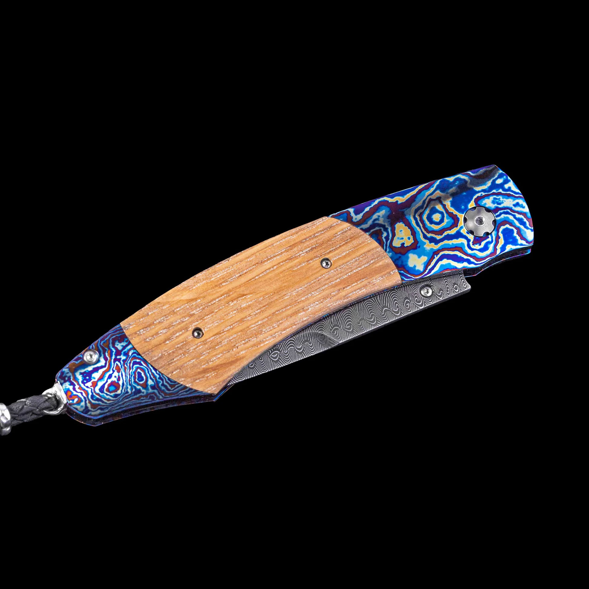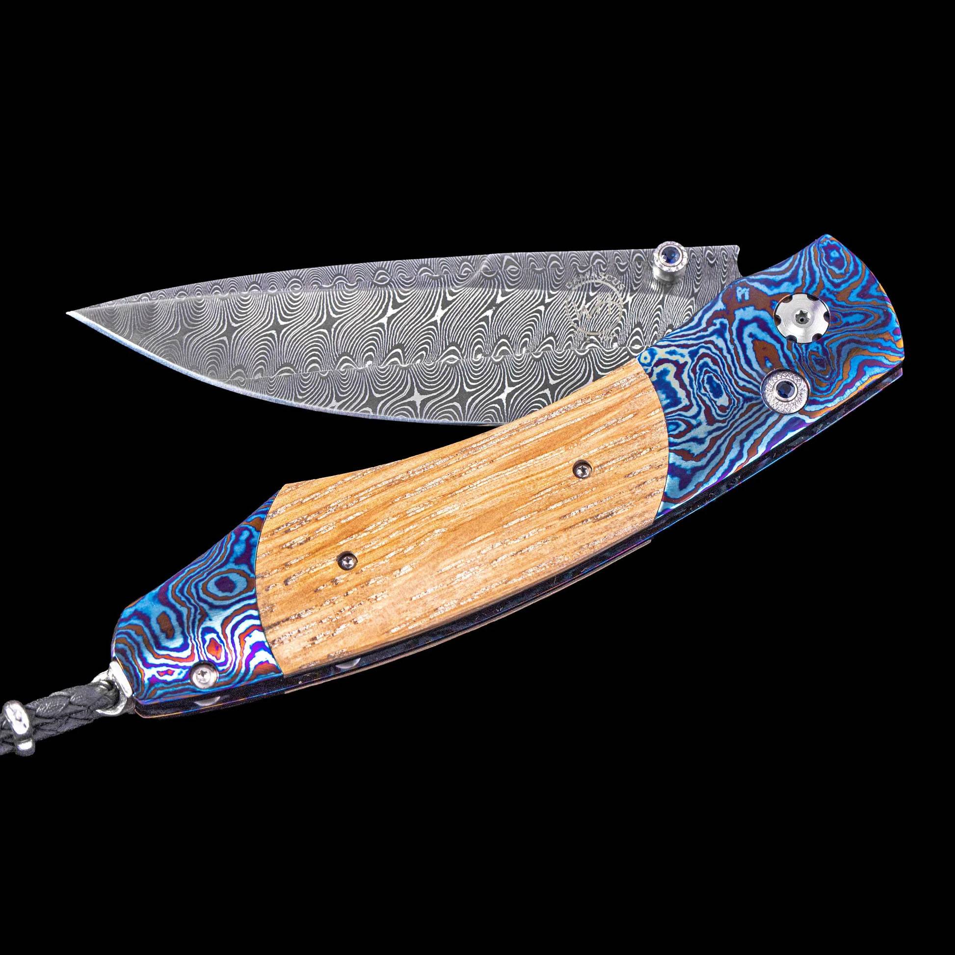 细节 独一无二的刀具 - 定制刀具 型号:B12 矛尖 刀刃:土耳其大马士革钢 - 马克西米拉诺·佩西 框架:热处理蓝化“Moku Ti”大马士革钢 规模:'Pappy Van Winkle' 酒桶木 宝石:蓝宝石 ...