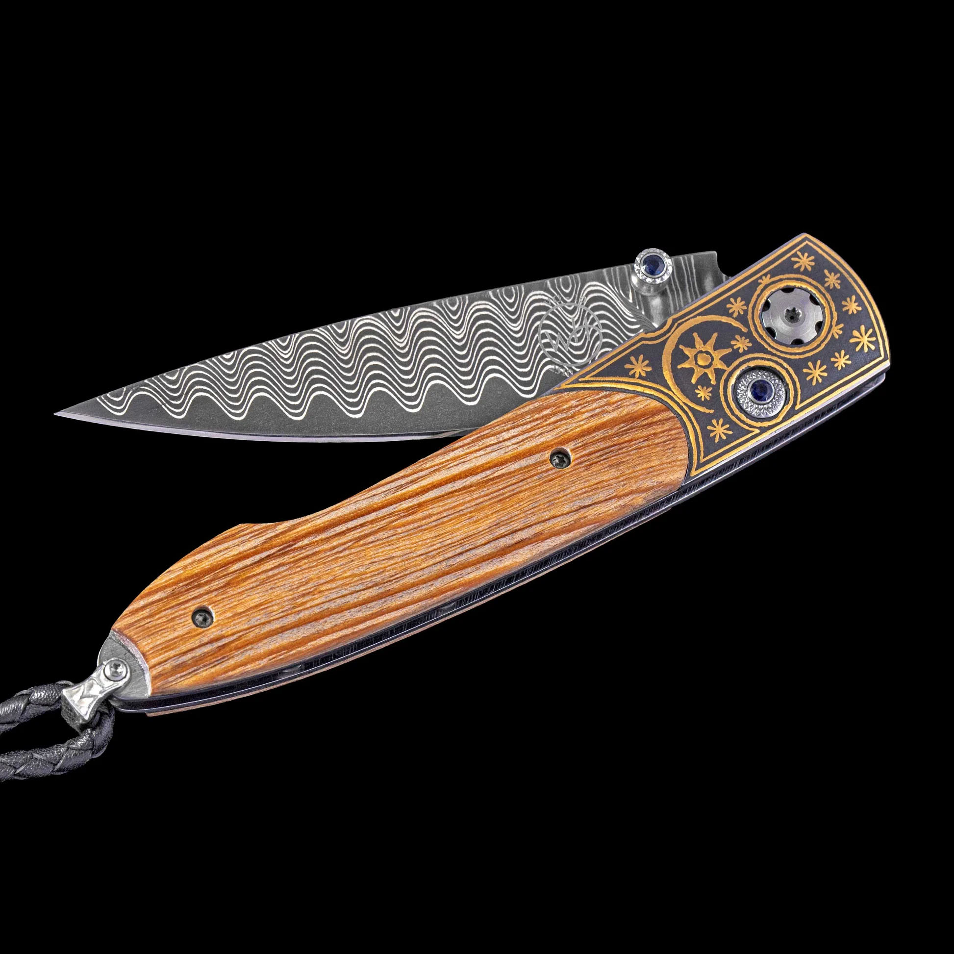 威廉·亨利 (william Henry Knives Inc)坐落于美国加利弗尼亚州,由马特·威廉·肯耐博(Mattew william Conable)及投资者迈克尔·亨利·哈纳克(Michael Henry Honack) 干1997年共同创立经营。威廉亨利这个品牌代表着全球手工刀的巅峰,它代表着高端收藏类折刀的顶点。威廉亨利手工刀被喻为全世界制作最好的手工刀之一。从刃材到手柄,从设计到工艺,制作出全球艺术类刀具的极品。它的每一道工序都严格遵循其自定的超高标准:选材、组装、打磨等。所有细节都精益求精,以确保出品的刀具都能经受时间和同行的严苟测试,件件均是杰作。