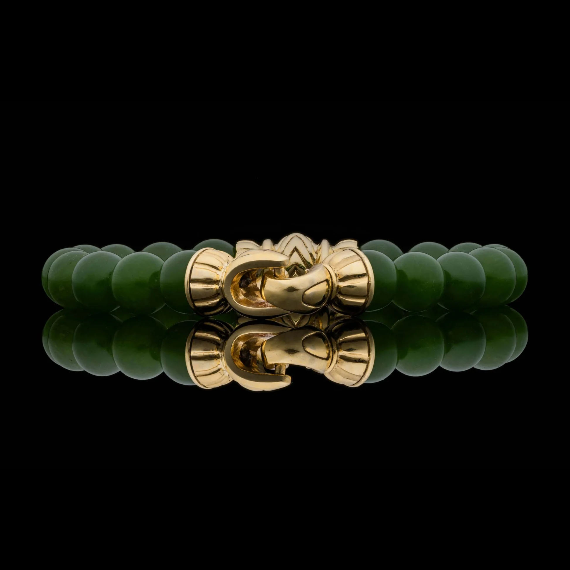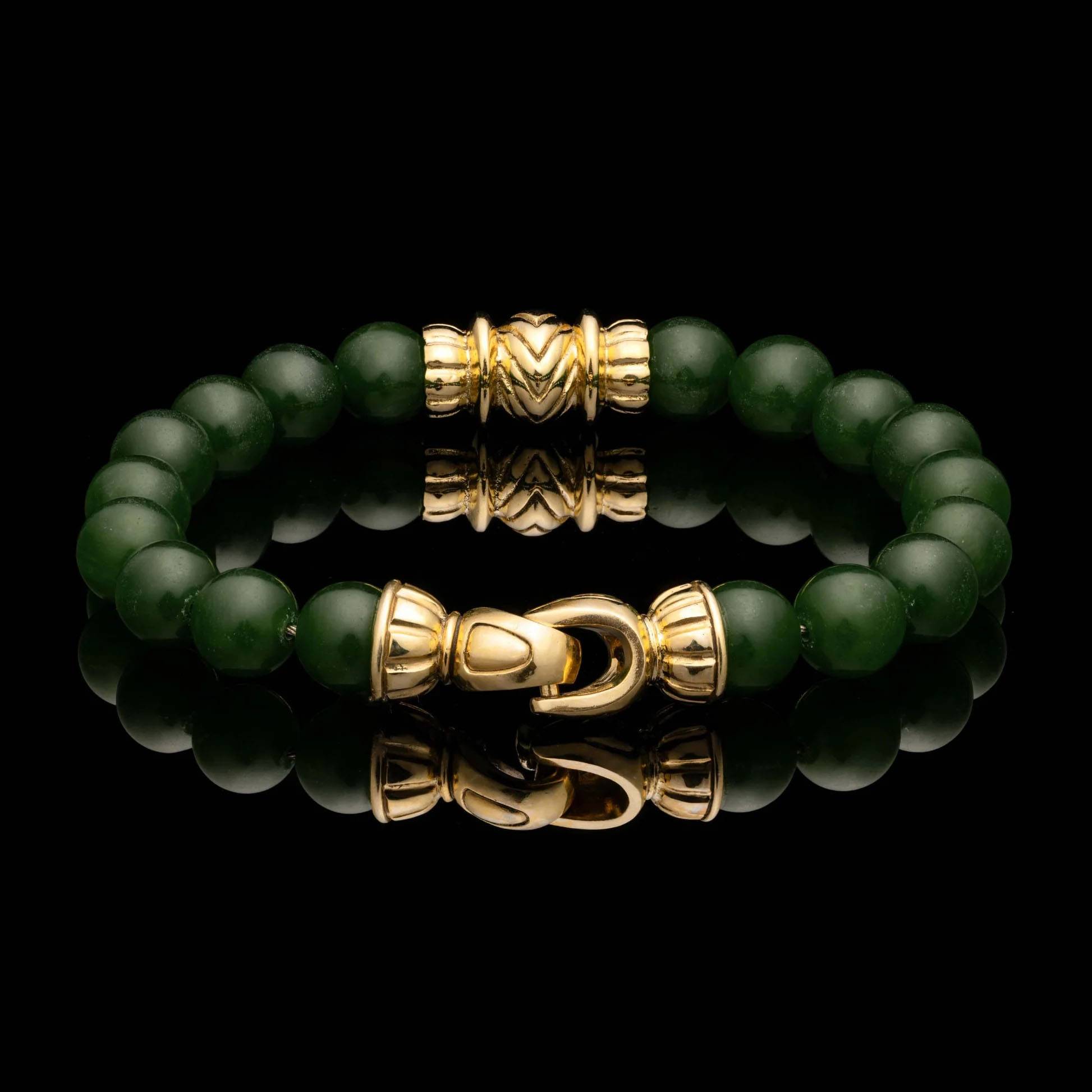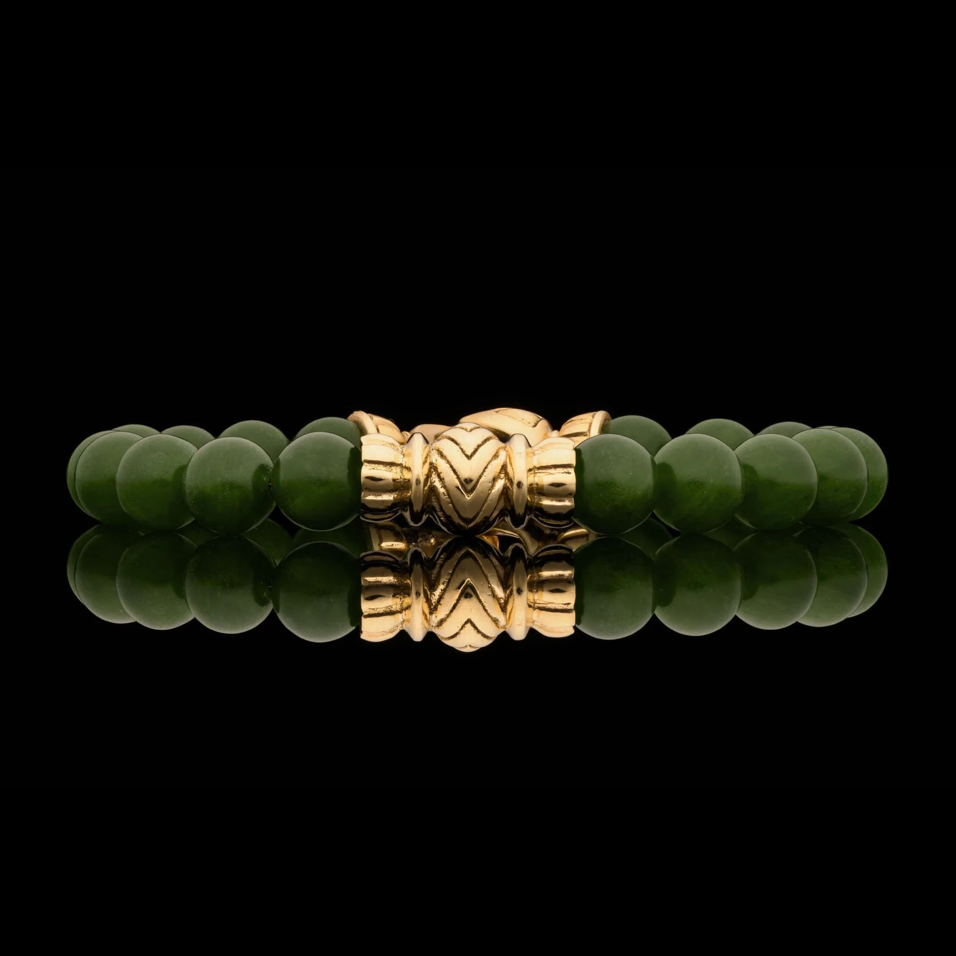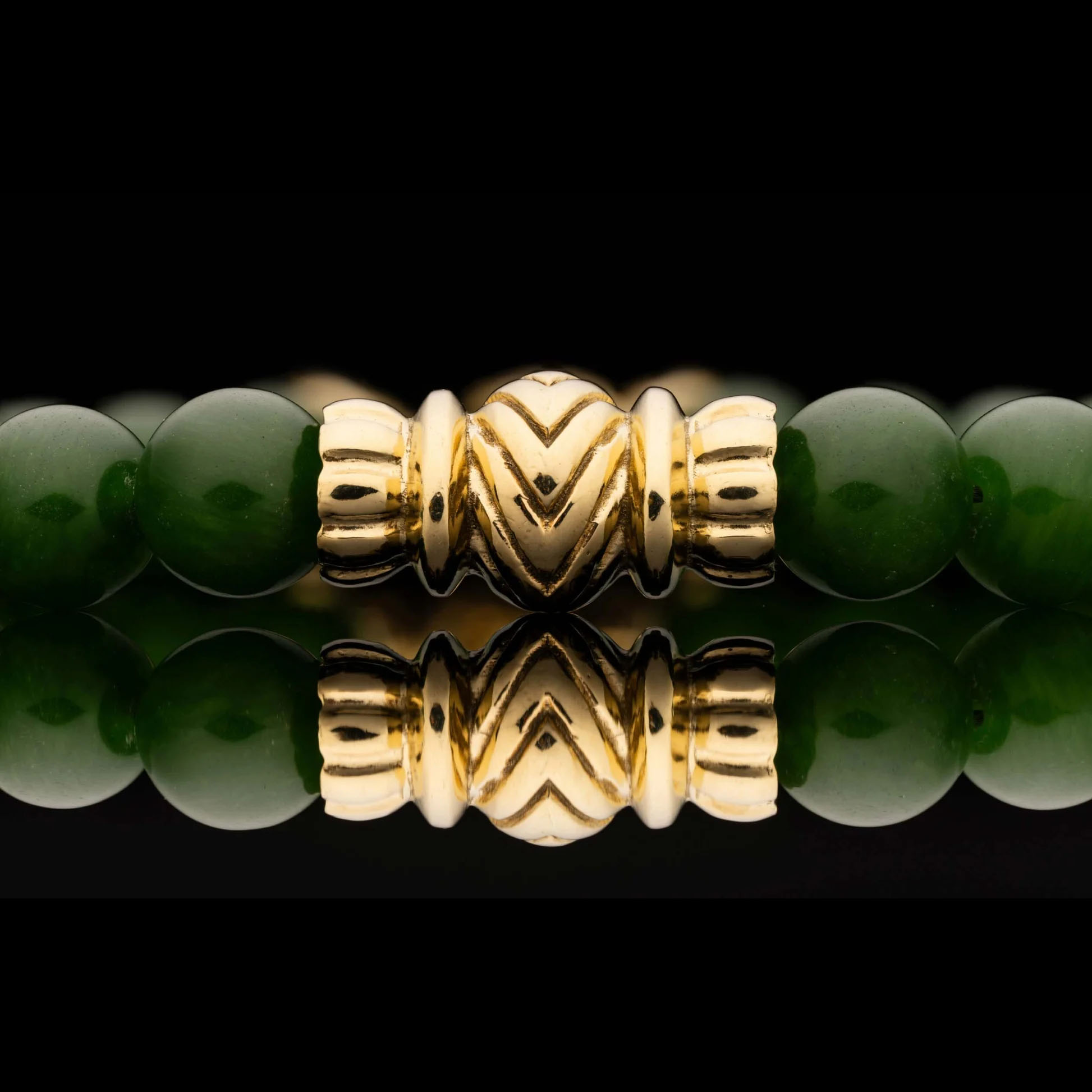 尽情沉醉于我们“Pilas”串珠手链的璀璨光芒。这款手链的设计灵感源自玛雅装饰艺术复兴风格,以翠绿的玉珠为珠,两侧饰以光泽闪耀的18K黄金端盖,中心主珠的设计灵感则源自阿兹特克和玛雅几何图案。这款手链散发着奢华气息,融合了永恒的经典传承与现代设计,邀您以焕然一新的历史装点自身。