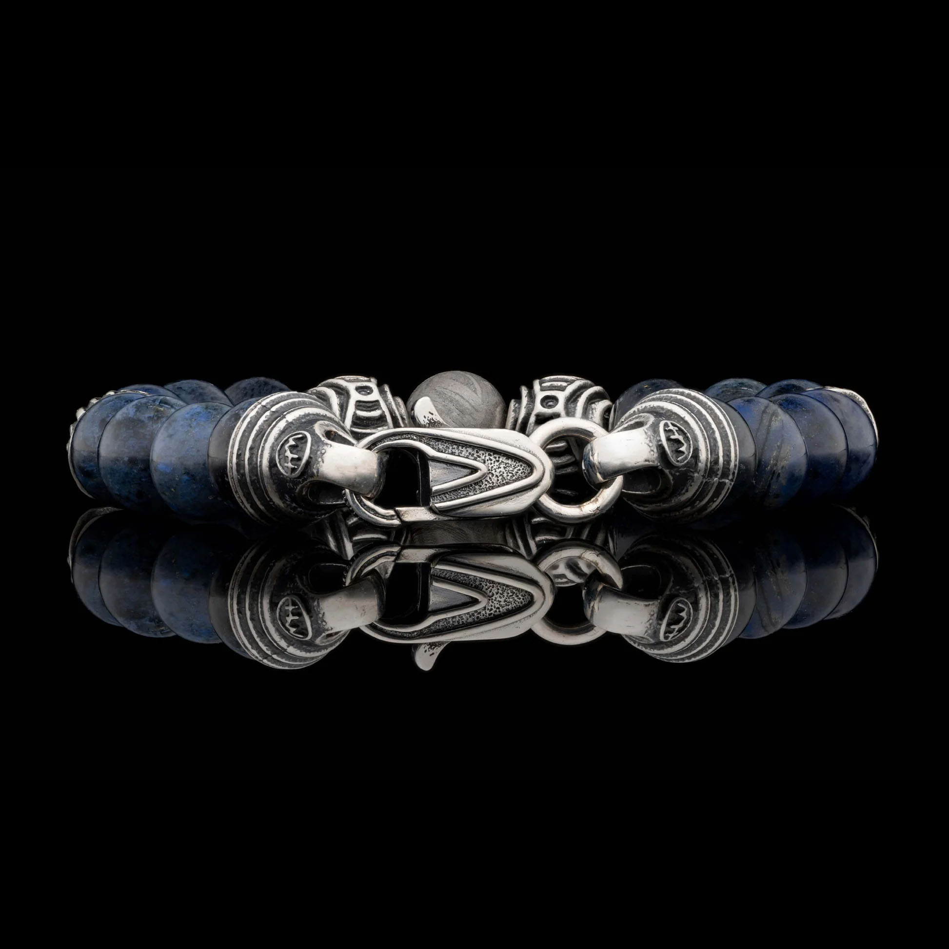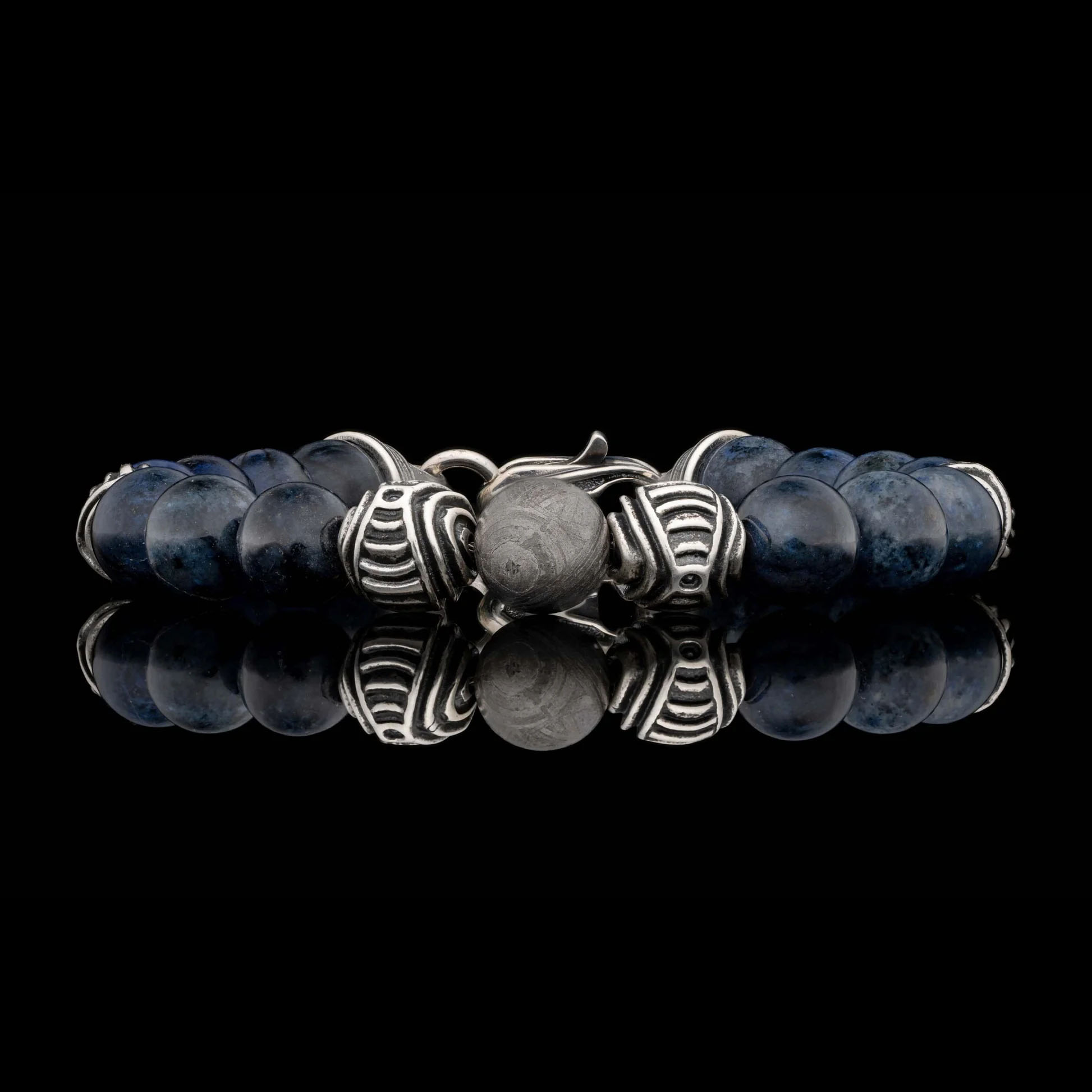 这款名为“Celestial”的串珠手链,以10毫米陶瓷涂层吉贝翁陨石珠、雕塑般的铜绿纯银和抛光蓝色杜莫特石为特色,让人联想起我们星球之外的行星,带您领略宇宙的深邃。