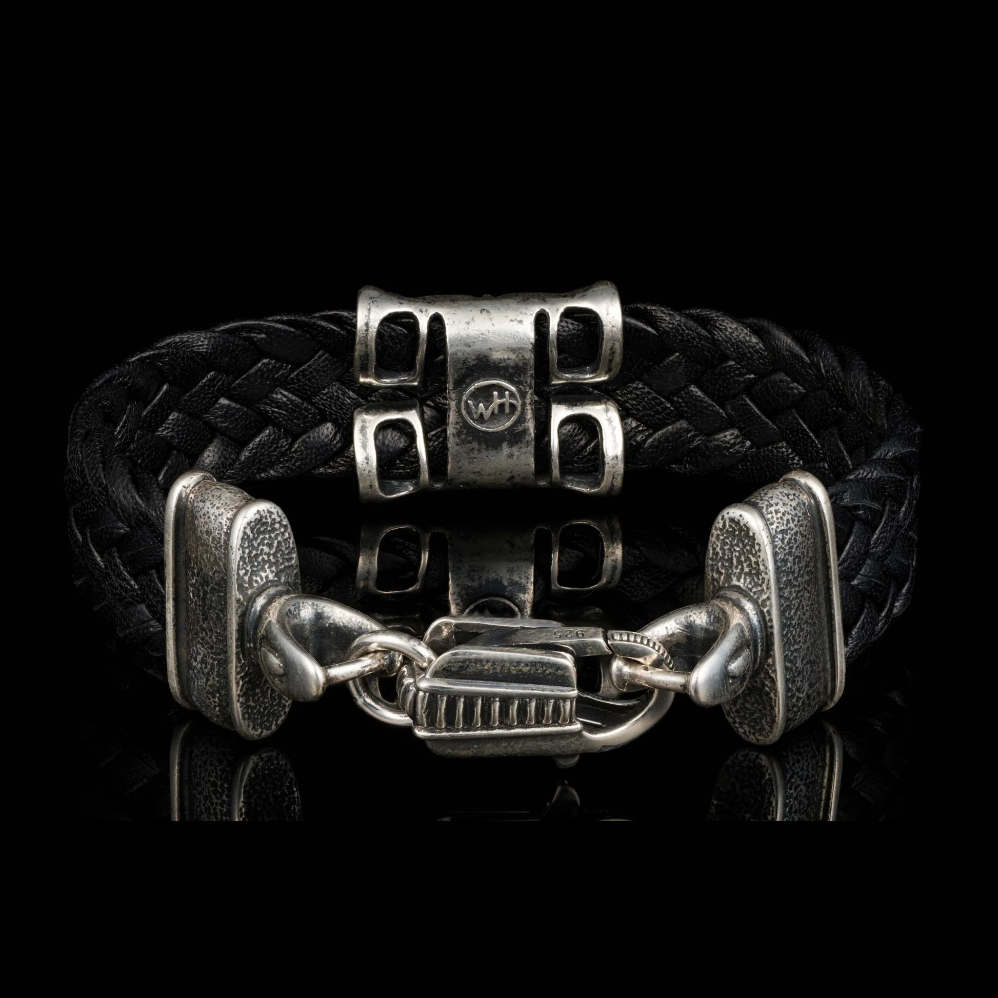 这款“菱形”皮革手镯采用质感丰富的宽幅编织袋鼠皮,饰以纹理细腻、做旧处理的纯银配件,呈现出威廉·亨利独有的深邃美感。这款厚重的手镯展现了精湛的工艺和卓越的品质,佩戴舒适,令人过目难忘。