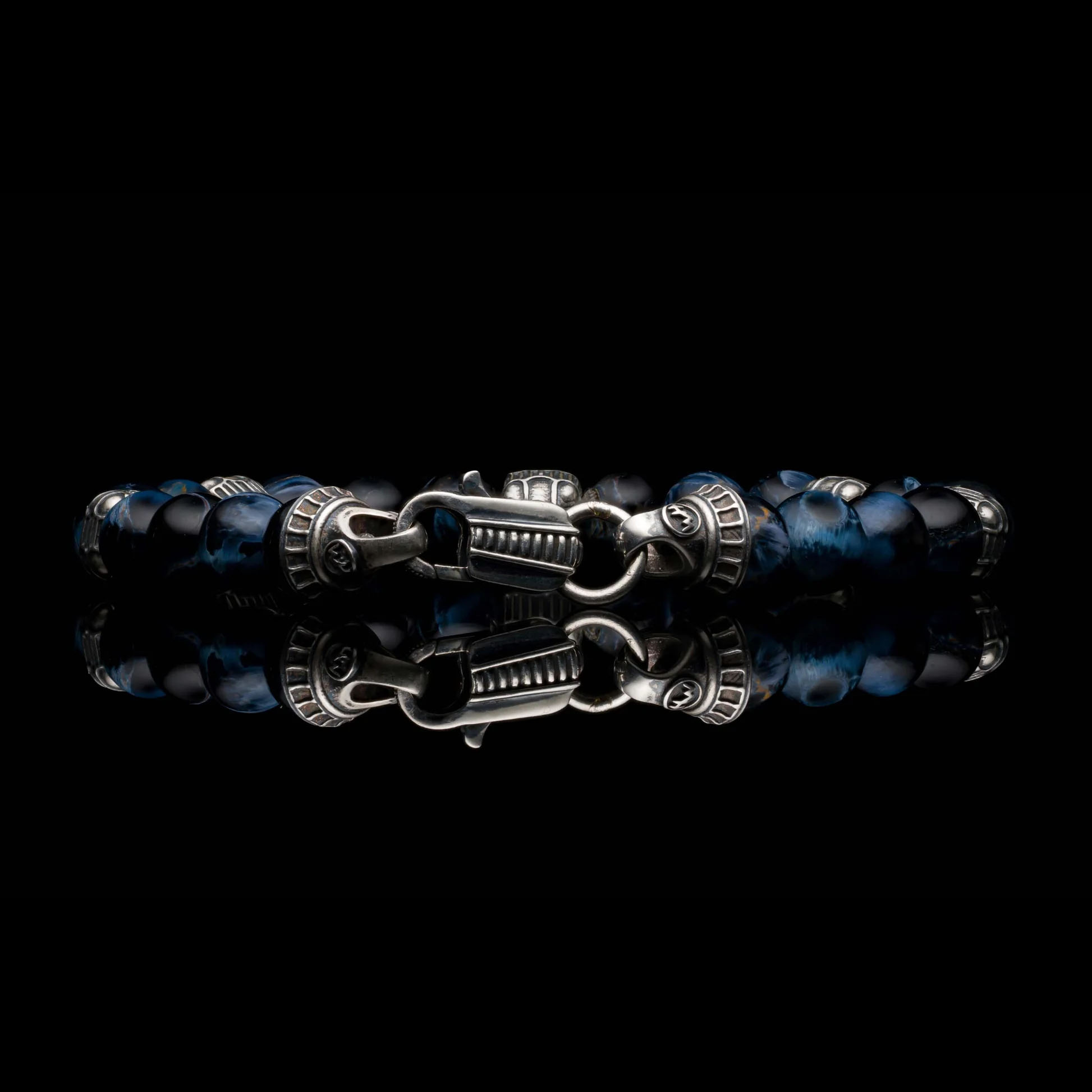 精致的力量,更显纤巧——采用8毫米彼得石珠和绗缝纯银立方体,搭配定制搭扣。动感与结构的完美融合,专为注重细节、低调奢华的收藏家而打造。
