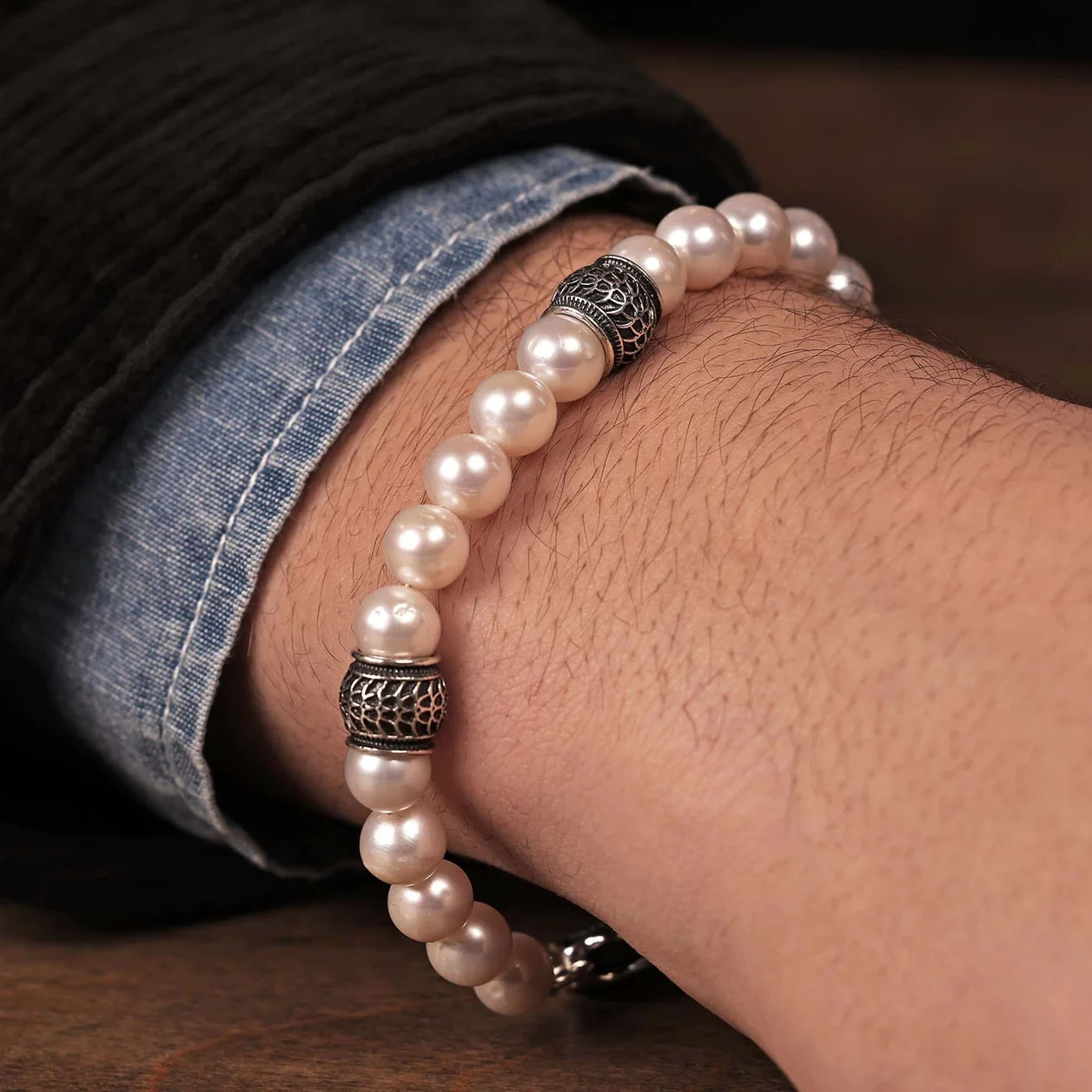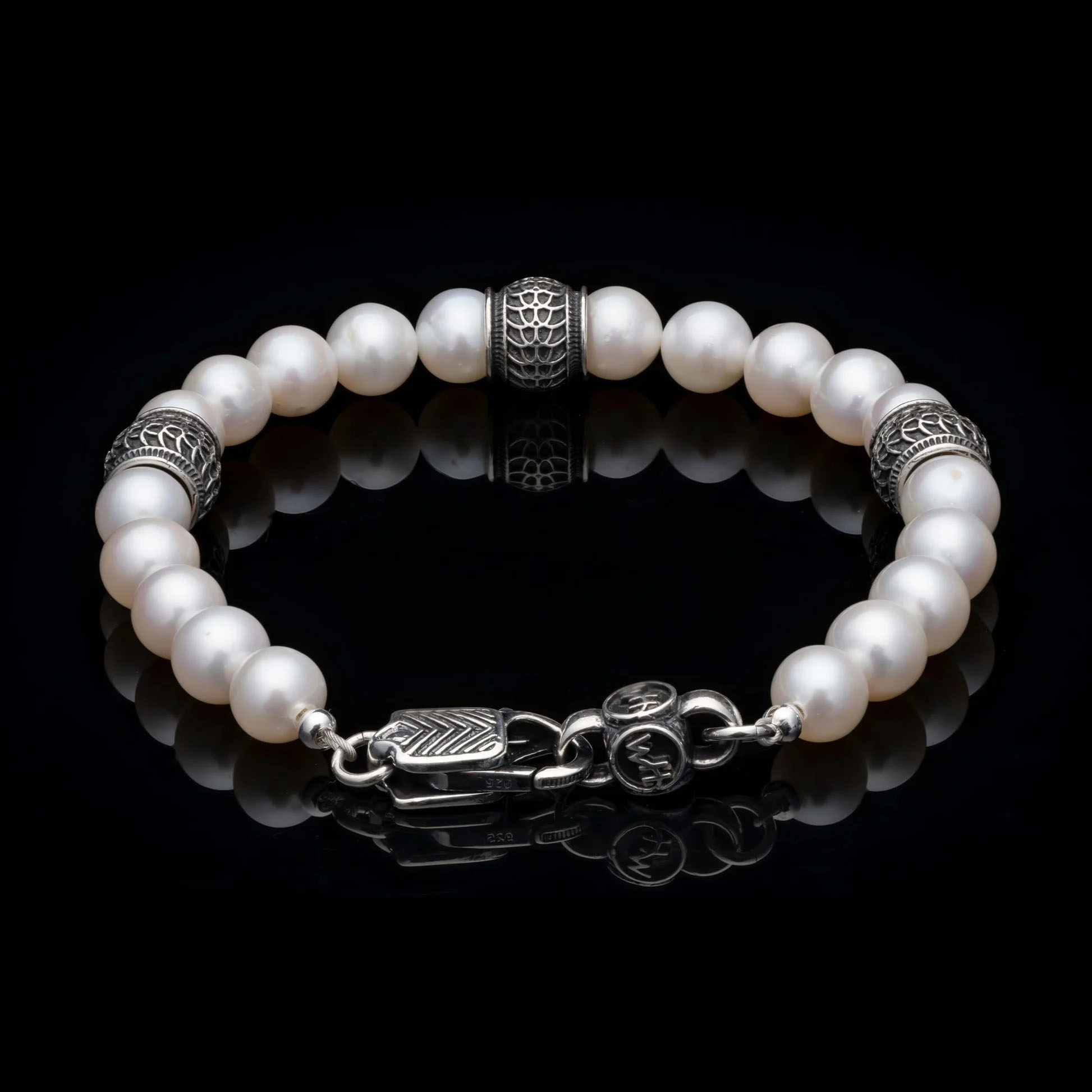 这款名为“满月”的手链堪称经典之作,采用精选8毫米圆形淡水白珍珠手工打造而成,造型别致。三颗纯银立柱珠巧妙地打破了线条的单调,定制的搭扣也同样采用纯银材质。每条手链均以尼龙包裹的不锈钢缆绳制成,经久耐用。无论是单独佩戴,还是与朋友叠戴,都能为您的每一个时刻增添光彩。