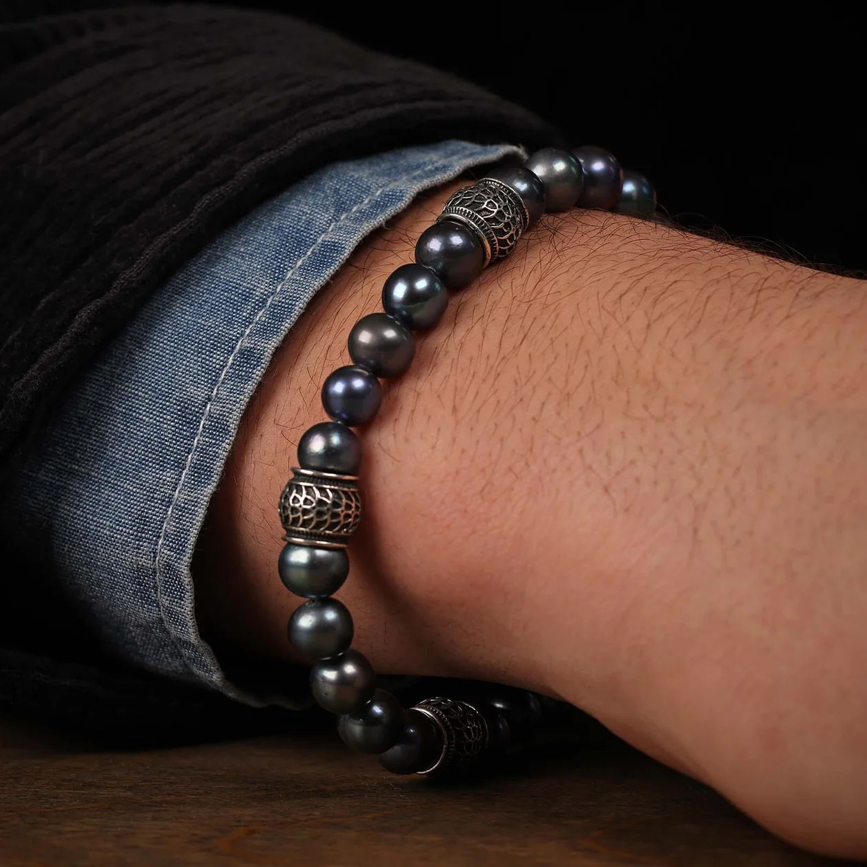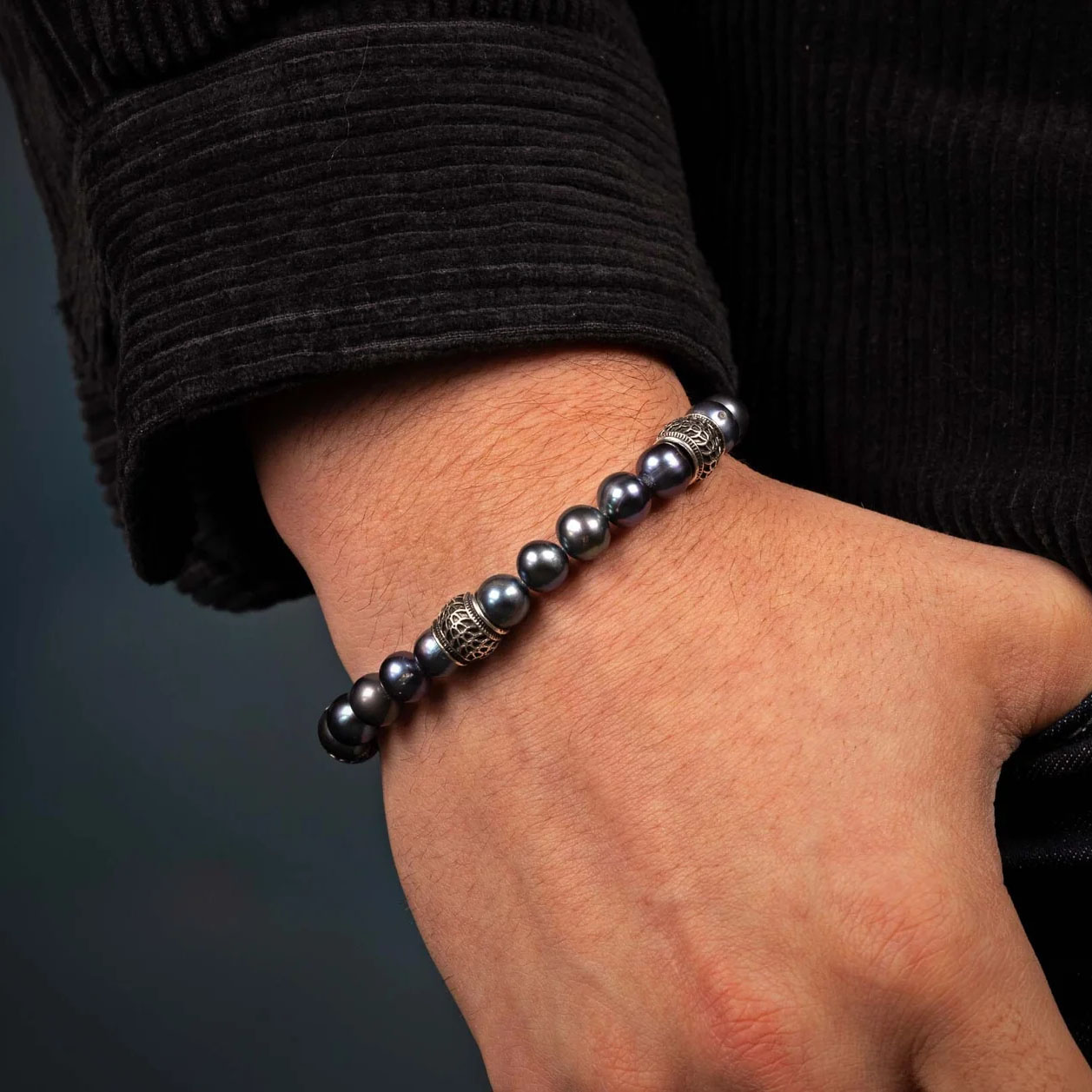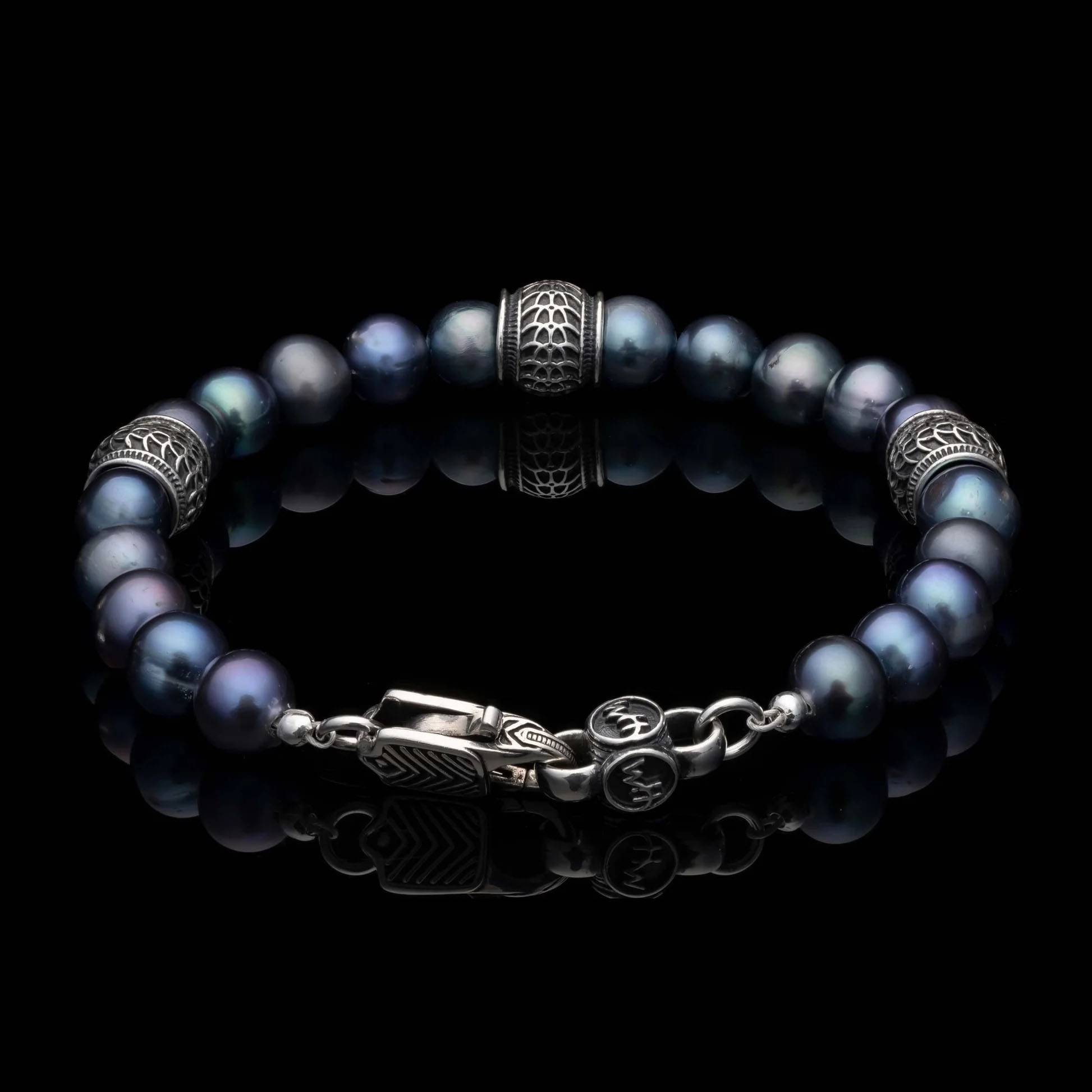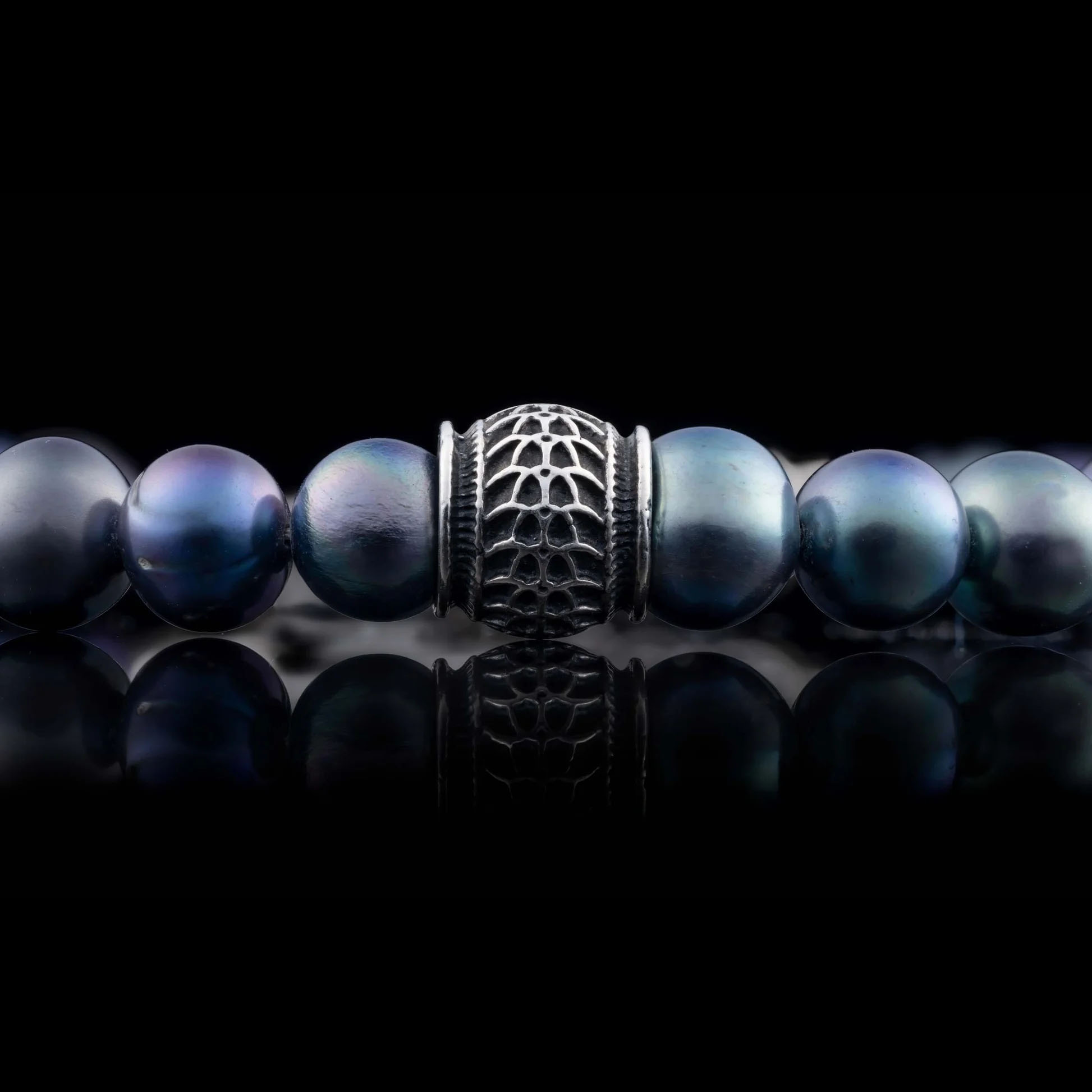 这款黑色蕾丝项链大胆而低调,对比与和谐并存,无需刻意张扬,却能瞬间成为全场焦点。优质淡水孔雀珍珠与纯银雕琢的角珠相映成趣,串于尼龙包裹的不锈钢缆绳之上,并以纯银搭扣收尾。无论任何场合,任何服饰,它都是一件值得拥有的必备单品。