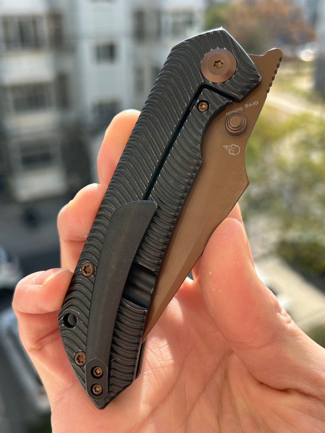 | 手柄材质 | 青铜阳极氧化钛,微磨水波纹理 |