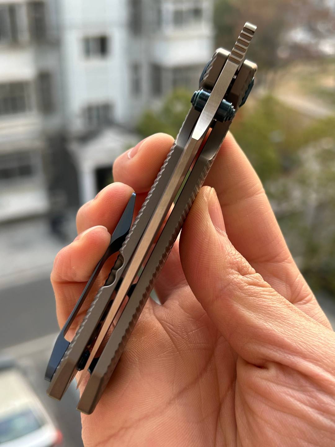 Fenrir采用了业界认可的框架锁结构作为锁具机构。 同时,它保留了实用的拇指钉设计。拇指螺柱表面处理有防滑花纹;结合Frame Lock的顺滑回弹特性,用户只需一根手指即可快速推动拇指螺柱以展开刀刃——过程中不会发生卡壳,开刀动作顺畅。