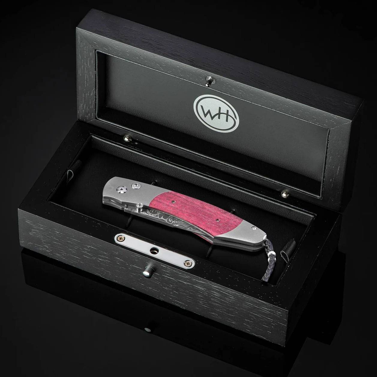 威廉·亨利 (william Henry Knives Inc)坐落于美国加利弗尼亚州,由马特·威廉·肯耐博(Mattew william Conable)及投资者迈克尔·亨利·哈纳克(Michael Henry Honack) 干1997年共同创立经营。威廉亨利这个品牌代表着全球手工刀的巅峰,它代表着高端收藏类折刀的顶点。威廉亨利手工刀被喻为全世界制作最好的手工刀之一。从刃材到手柄,从设计到工艺,制作出全球艺术类刀具的极品。它的每一道工序都严格遵循其自定的超高标准:选材、组装、打磨等。所有细节都精益求精,以确保出品的刀具都能经受时间和同行的严苟测试,件件均是杰作。