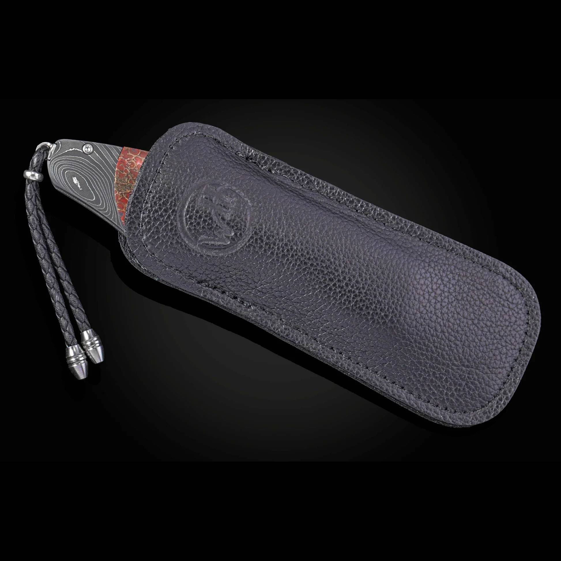 细节 Spearpoint“恐龙帝国”折刀的刀架由Chad Nichols手工锻造,采用“扭曲”大马士革钢,并镶嵌有恐龙化石骨,这是1亿多年前漫步地球的迷惑龙留下的唯一遗迹。刀刃则由Luke Mattern打造,采用“马赛克”大...