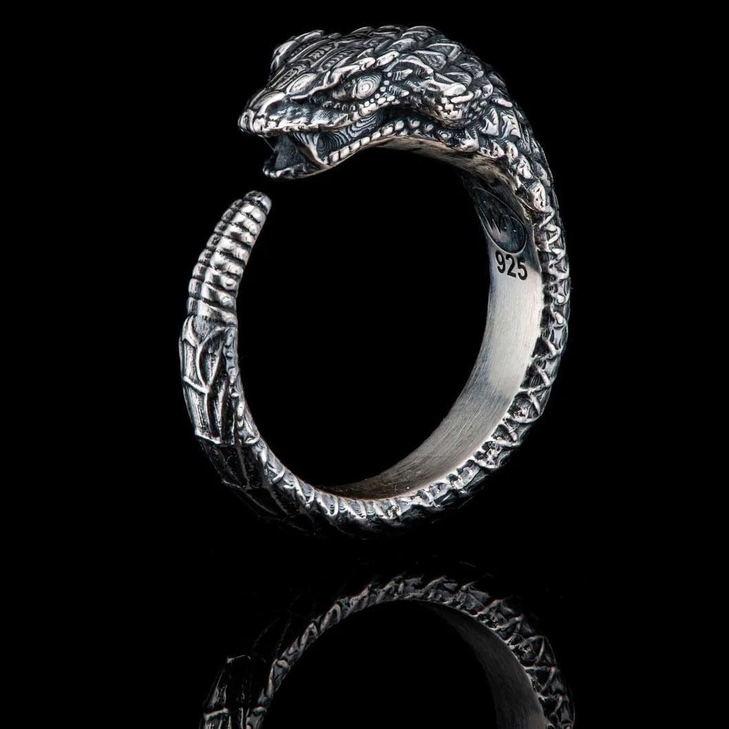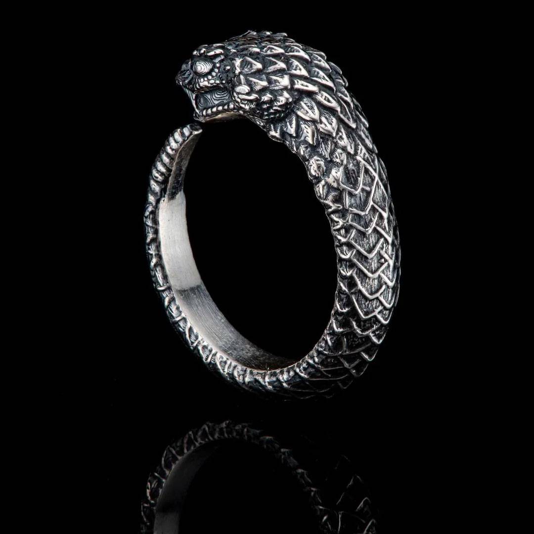 细节 这款精美戒指采用纯银打造,表面经微妙的氧化处理,展现出我们原创设计的深度和细节。戒指内侧贴合手指,经手工抛光至镜面效果,佩戴舒适。在希腊神话中,蛇神奥菲翁孕育了创世之卵,万物由此诞...