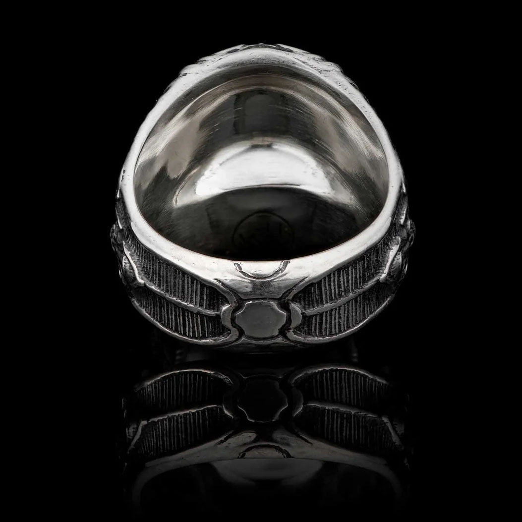 细节 多年来,应广大顾客的强烈要求,William Henry 隆重推出我们标志性的“糖骷髅”图案戒指系列。Rebel 系列戒指尺寸较小,但绝非小巧或低调。戒指采用纯银精雕细琢而成,外侧饰以我们标志性的做旧铜...