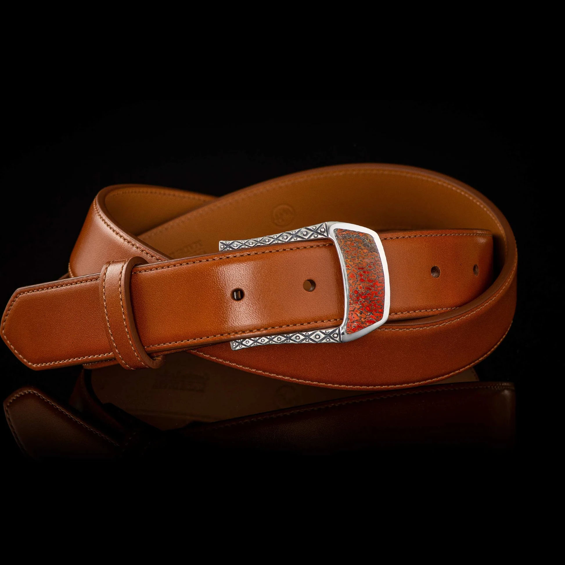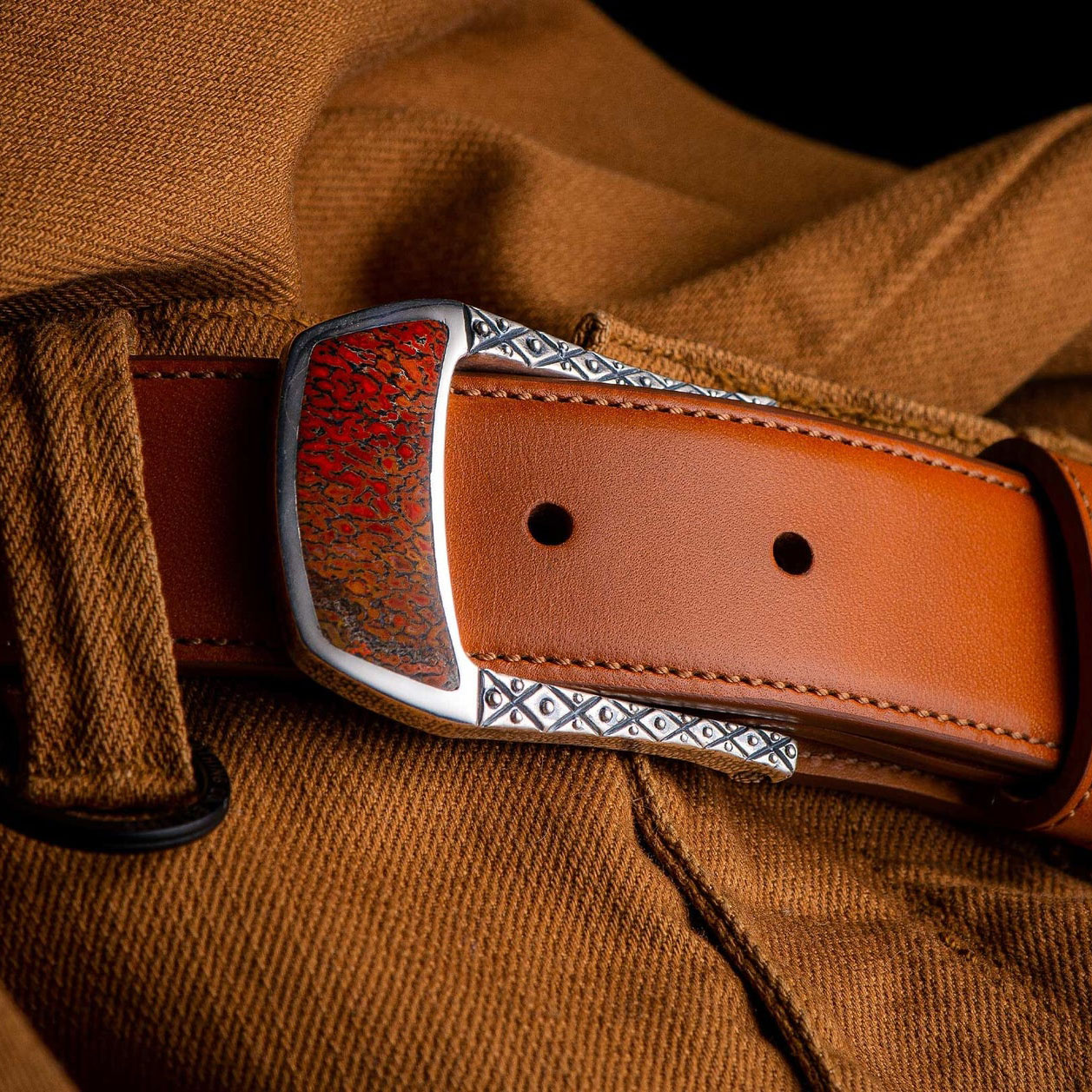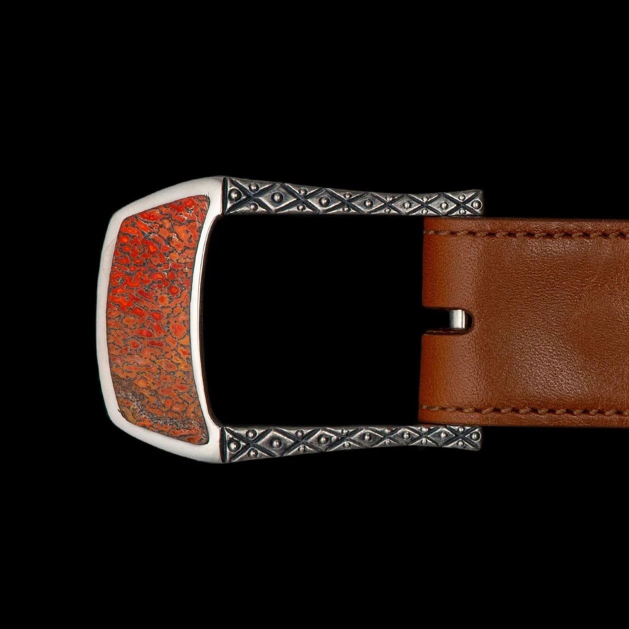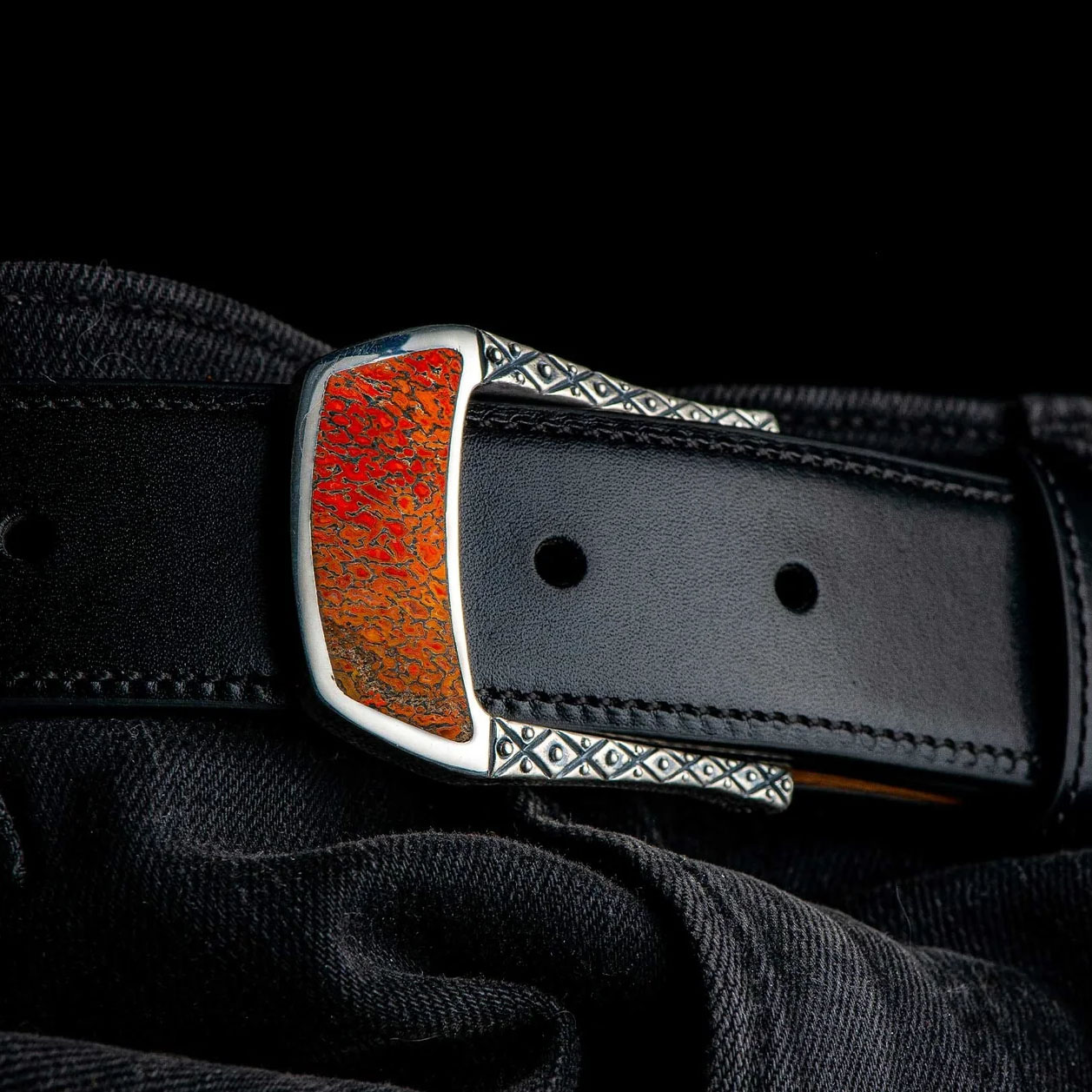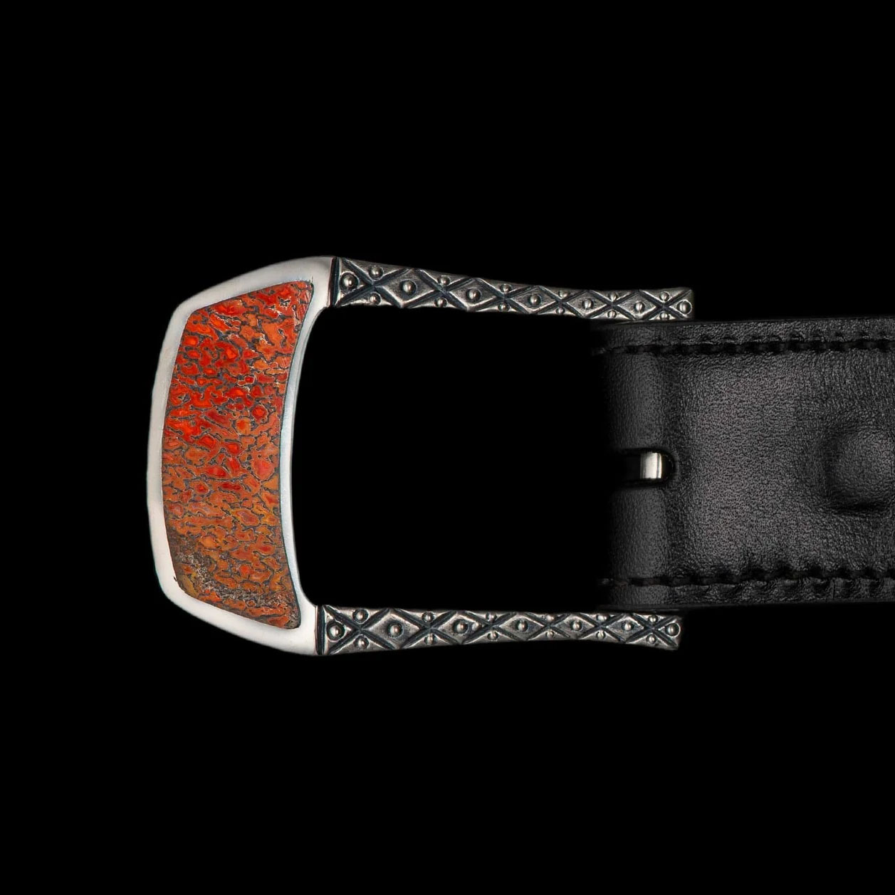 细节 这款精美的皮带扣适用于各种场合,从街头到商务会议,都能为任何装束增添优雅气息。它采用纯银打造,最引人注目的是镶嵌的精美恐龙化石骨。这种化石产自美国西南部,距今已有1亿年历史,历经亿万...