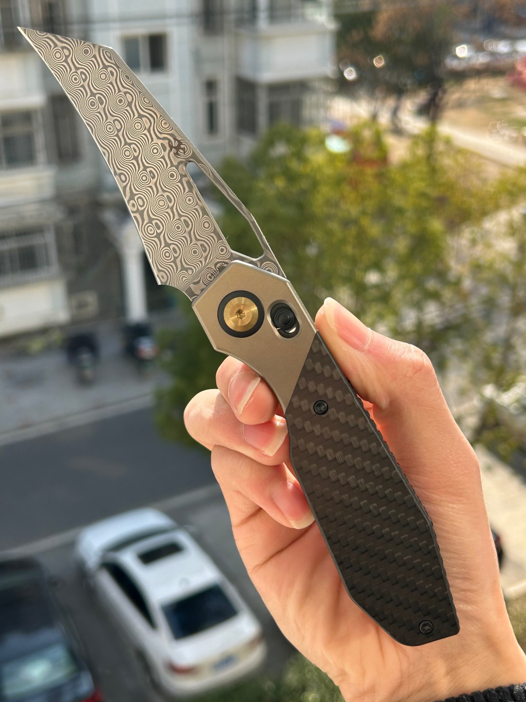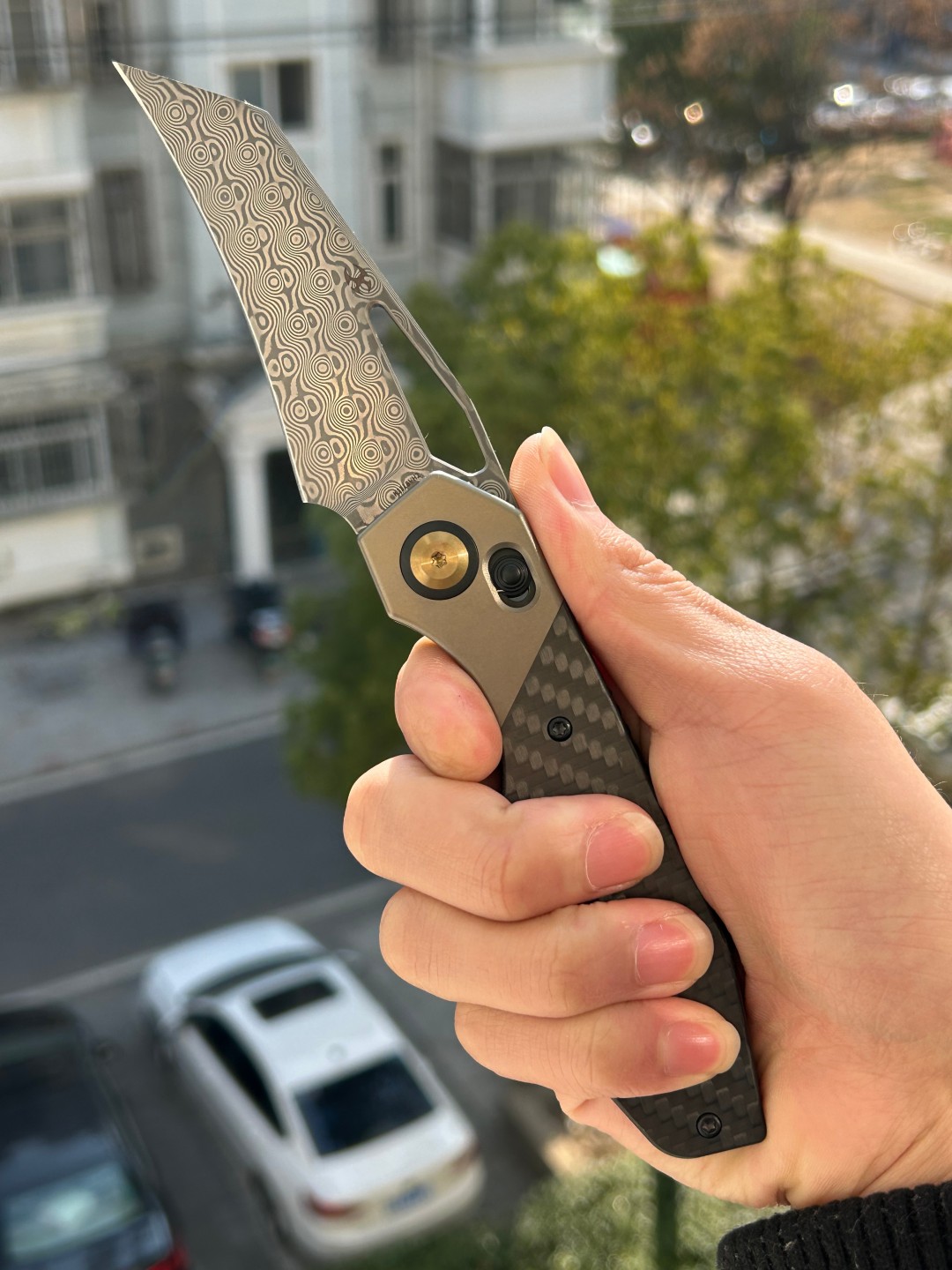 | 手柄材质 | 青铜阳极氧化钛,斜纹碳纤维,G10镶嵌 |