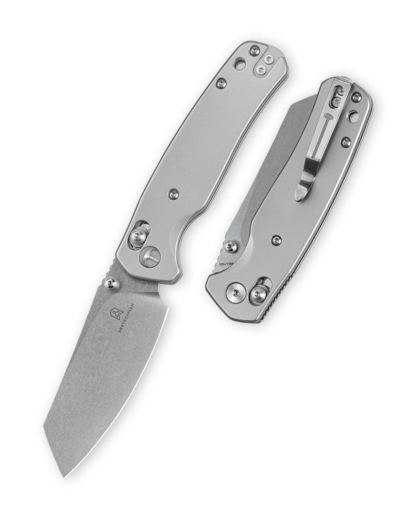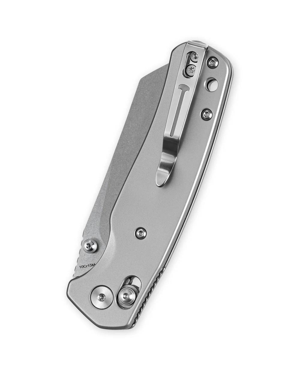 刀刃长度:3.15英寸(80毫米) 手柄长度:4.055英寸(103毫米) 全长:7.205英寸(183毫米) 刀刃厚度:0.091英寸(2.3毫米) 刀片材质:10Cr15MoV 刀刃表面处理:石洗 刀柄材质:不锈钢 手柄表面处理:珠状喷砂 锁定机构:B锁 口袋夹:深背式,左右携带 刀重量:3.95盎司(112克) 中国制造