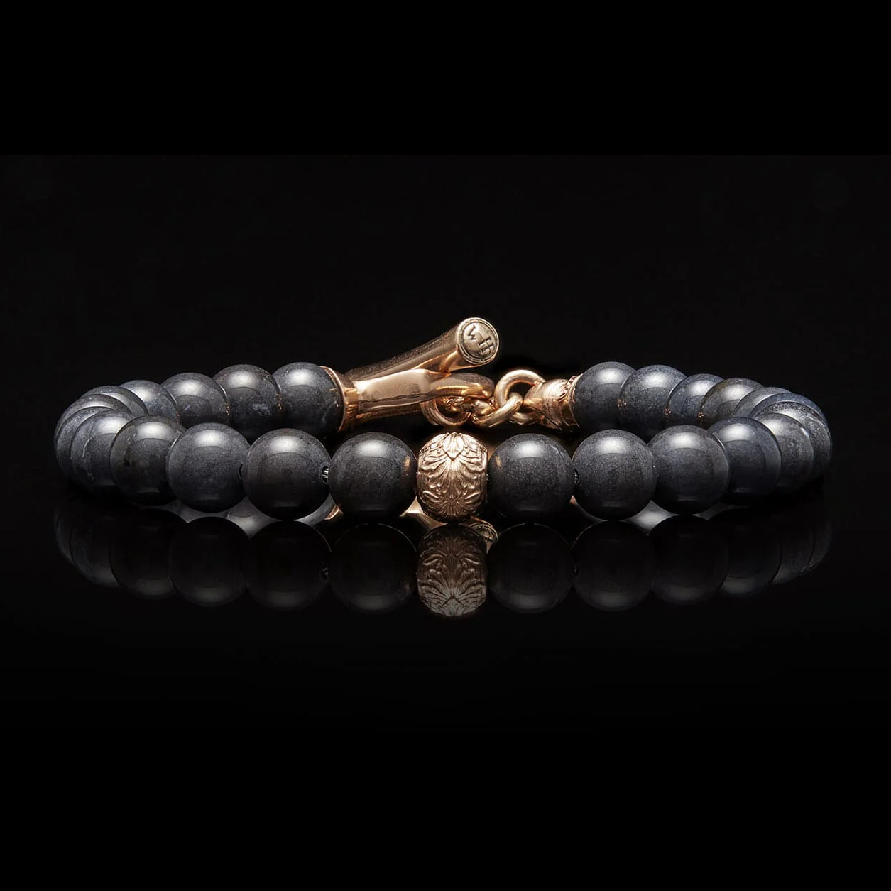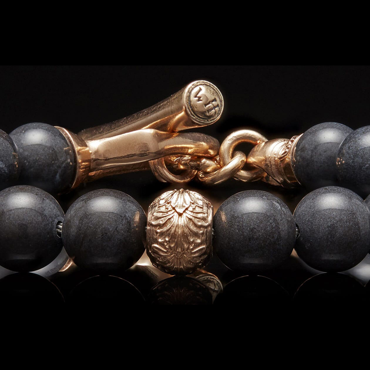 细节 当我们第一眼看到这颗产自我们家乡俄勒冈州的完美深灰色碧玉时,我们就知道一定要设计一款能与之相配的玫瑰金饰品。“Bandon”手链完美地融合了所有元素:一颗18K玫瑰金中心珠和“箭头”形T形扣,为...