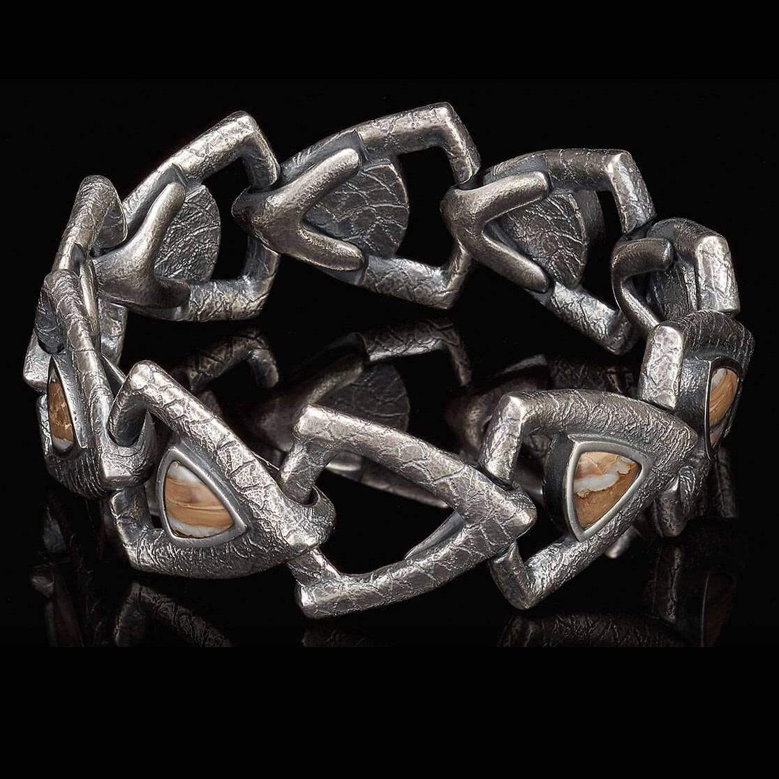 细节 Tempo腕表是我们此系列中尺寸最大的腕饰,其灵感源自经典的吉他拨片。它采用手工雕刻的纯银打造,并镶嵌一颗距今约1万年的猛犸象牙化石,整体设计流畅自然。Tempo腕表造型大胆,佩戴在手腕上极具...