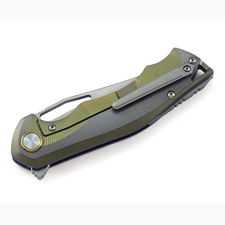 规格 刀刃材质:CPM-S35VN 刀刃表面处理:石洗 手柄材质:钛合金 描述:帧锁定切换器 手柄颜色:复古金色 全长:8.39英寸(213毫米) 闭合长度:4.92英寸(125毫米) 刀刃长度:3.46英...