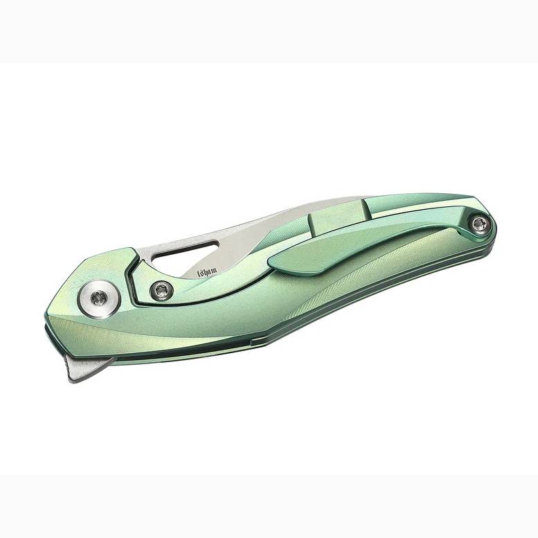 规格 刀刃材质:CPM-S35VN 刀刃表面处理:石洗+缎面 手柄材质:钛合金 描述:帧锁定翻转器 手柄颜色:绿色 全长:5.0英寸(127毫米) 闭合长度:2.91英寸(74毫米) 刀刃长度:2.09英...