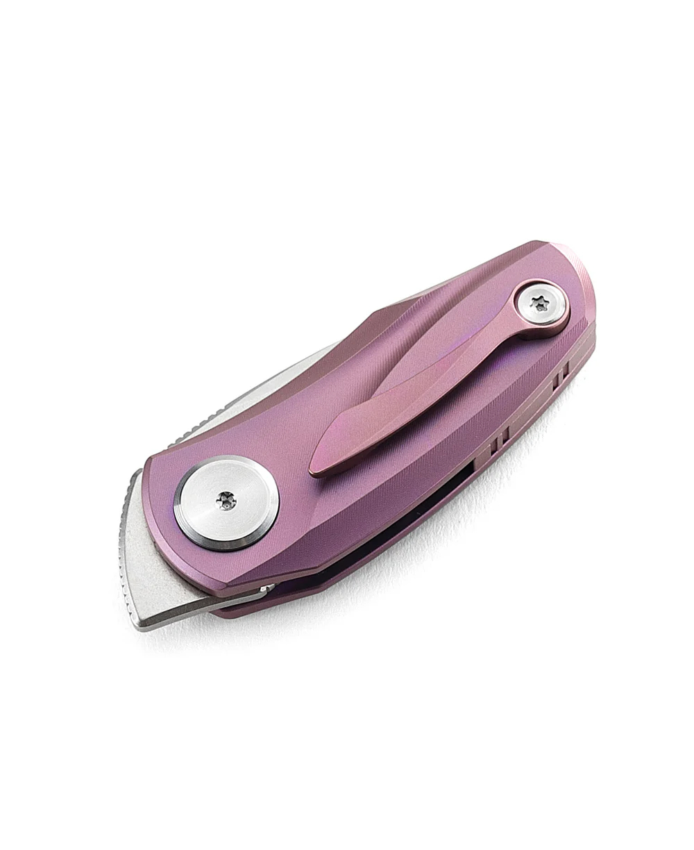规格 刀刃材质:M390 刀刃表面处理:石洗+缎面 手柄材质:钛合金 描述:双重卡位锁 手柄颜色:紫色 全长:3.86英寸(98毫米) 闭合长度:2.52英寸(64毫米) 刀刃长度:1.34英寸(34毫...