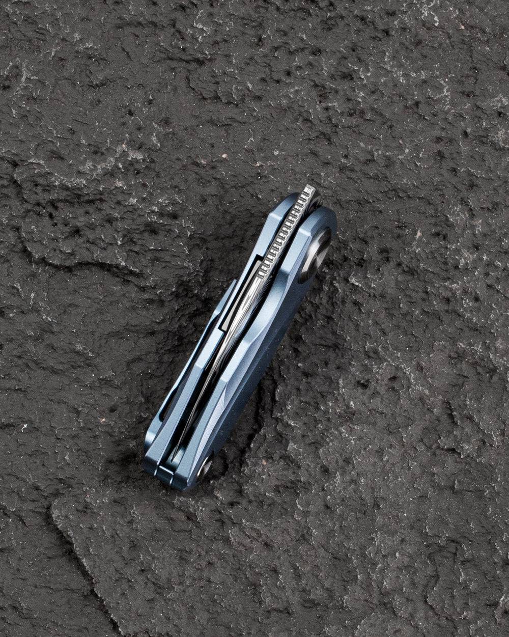 规格 刀刃材质:大钢 握把材质:钛合金 描述:衬里锁前翻板 手柄颜色:蓝色 全长:3.86英寸(98毫米) 闭合长度:2.52英寸(64毫米) 刀刃长度:1.34英寸(34毫米) 刀刃厚度:0.10英...