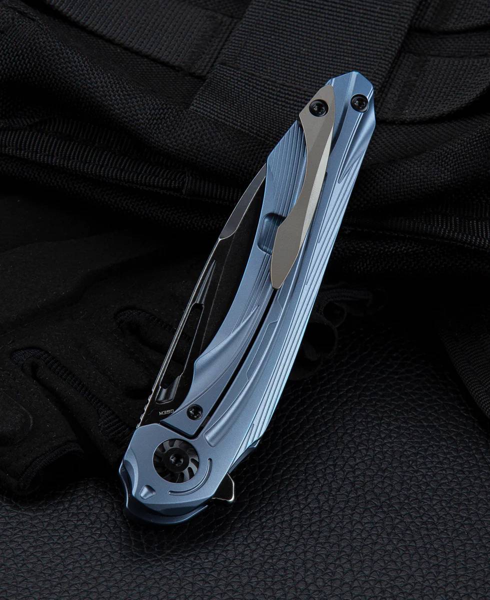 规格 刀刃材质:M390 刀刃表面:黑色石洗 手柄材质:钛合金 描述:帧锁定 手柄颜色:蓝色 全长:8.07英寸(205毫米) 闭合长度:4.64英寸(118毫米) 刀刃长度:3.43英寸(87毫米) ...