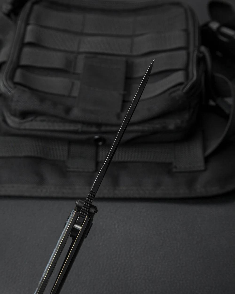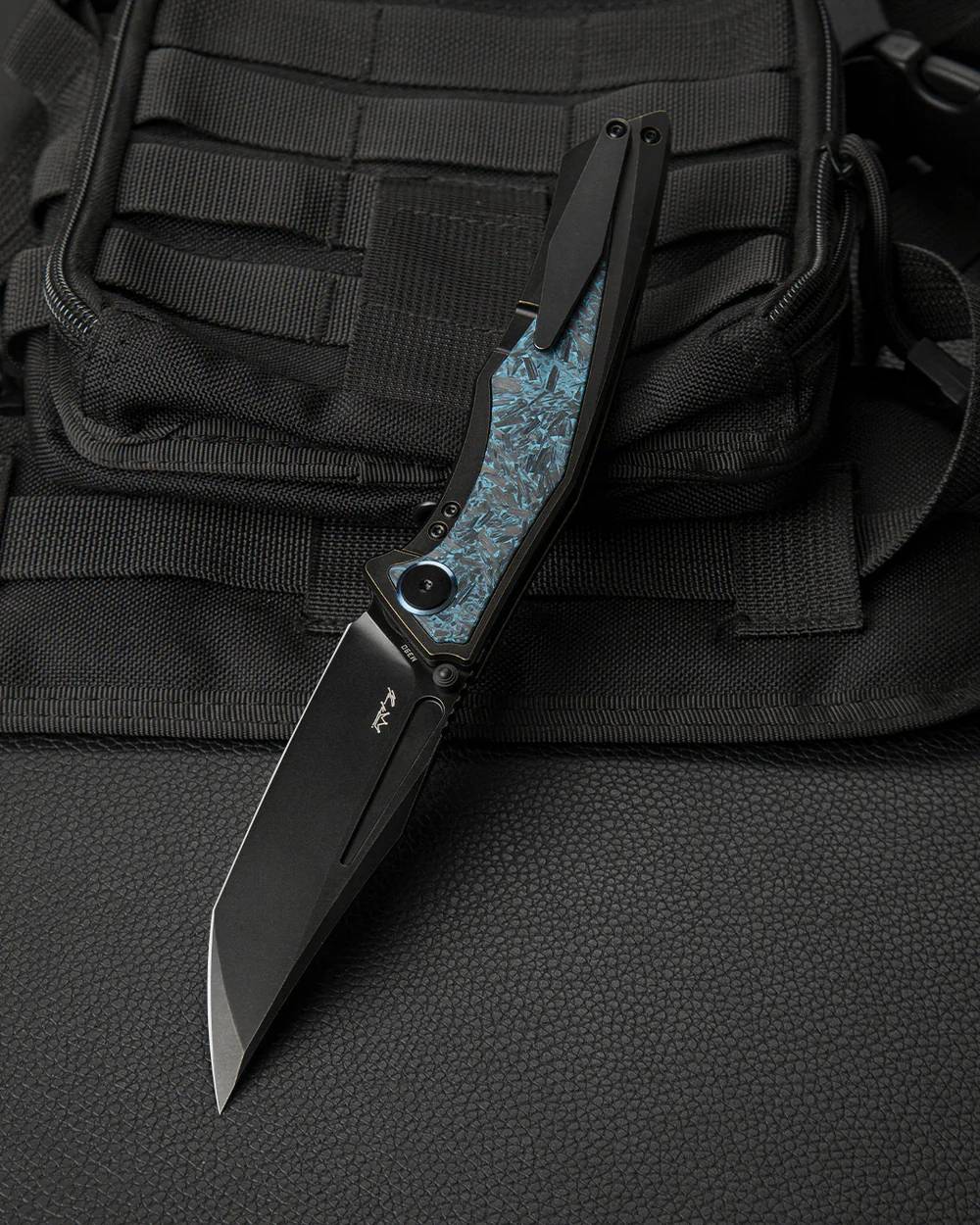 规格 刀刃材质:M390 刀刃表面:黑色石洗 握把材质:钛合金+黑色和蓝色碳纤维镶嵌 描述:帧锁定 手柄颜色:黑色 全长:9.1英寸(231毫米) 闭合长度:5.36英寸(136毫米) 刀刃长度:3...