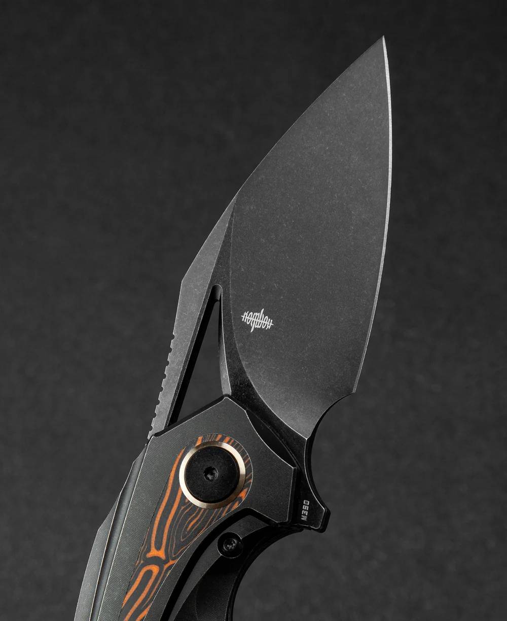 规格 刀刃材质:M390 刀刃表面:黑色石洗 握把材质:钛+黑橙G10 描述:帧锁定 手柄颜色:黑色 全长:6.7英寸(170毫米) 闭合长度:4.05英寸(102.8毫米) 刀刃长度:2.65英寸(67.2毫...