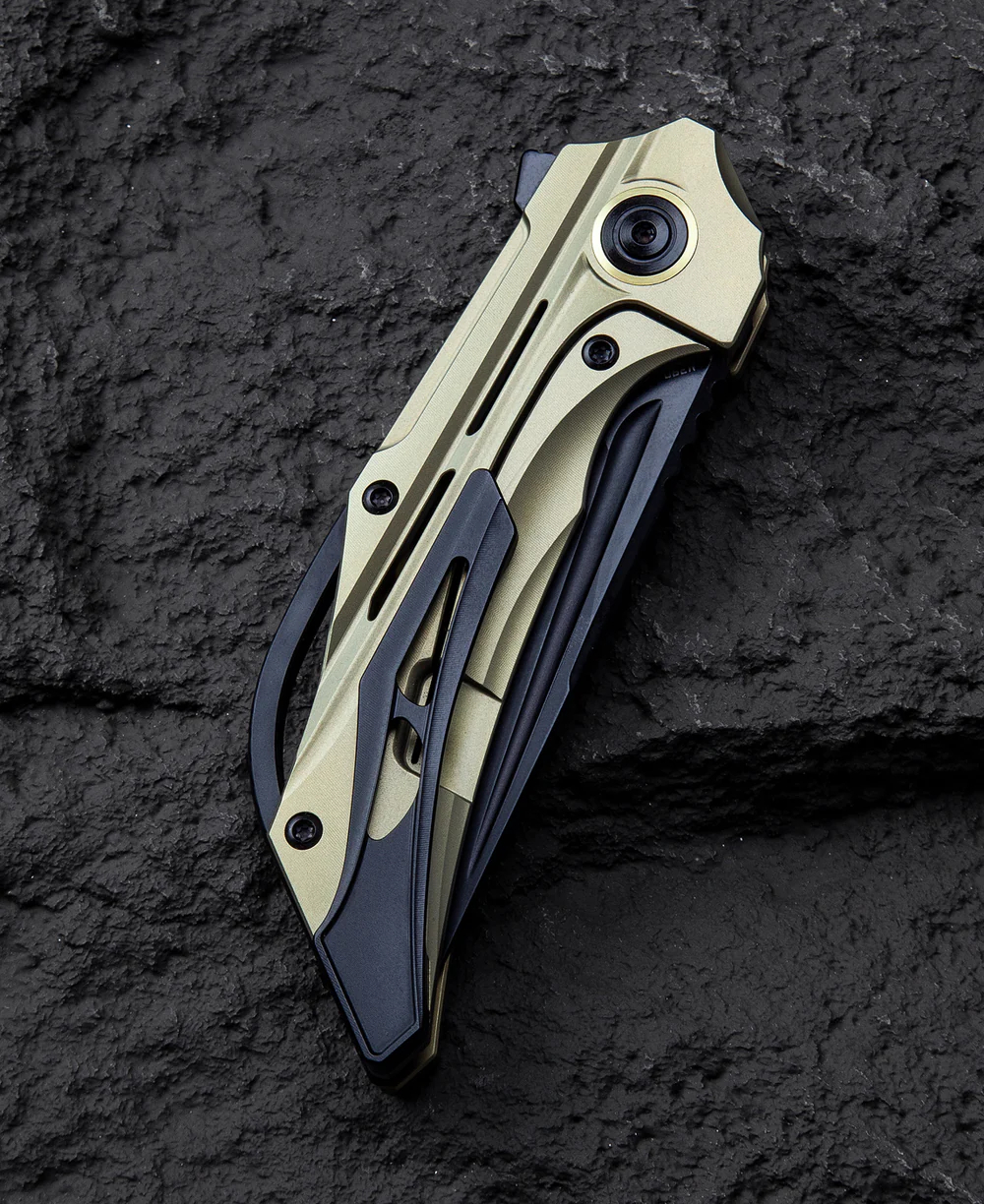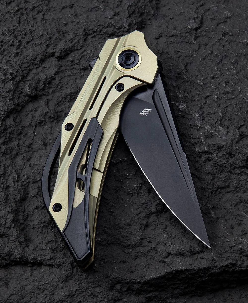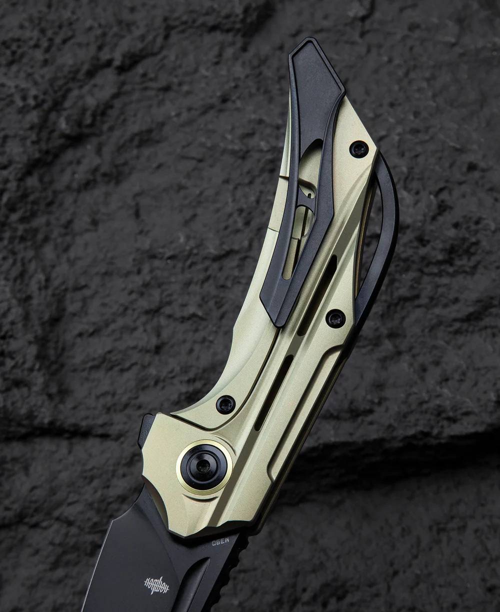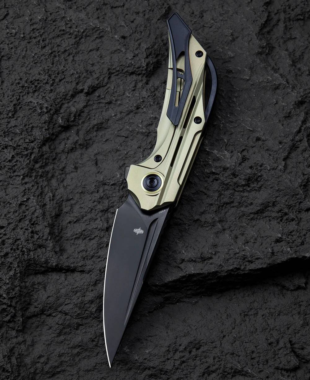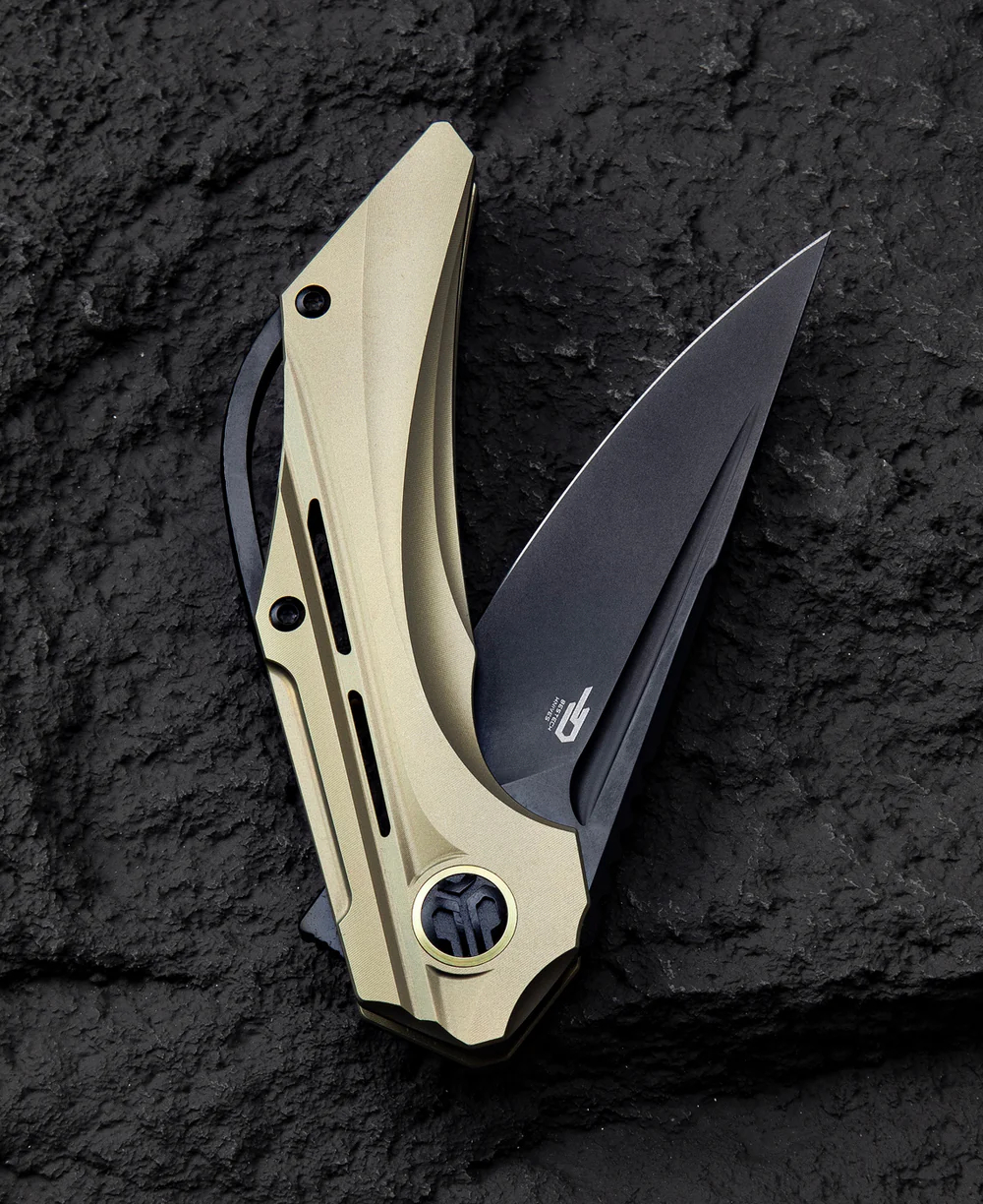 规格 刀刃材质:M390 刀刃表面:黑色石洗 手柄材质:钛合金 描述:帧锁定 握把颜色:金色 全长:7.8英寸(198毫米) 闭合长度:4.53英寸(115毫米) 刀刃长度:3.27英寸(83毫米) ...