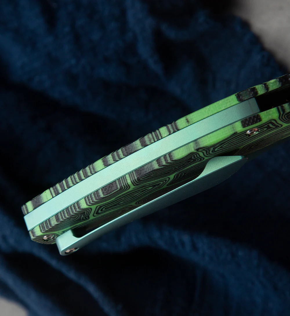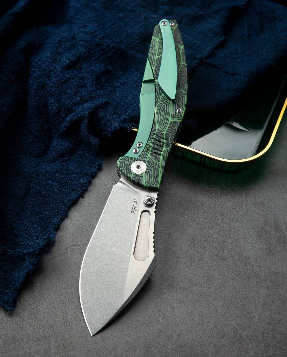 规格 刀刃材质:M390 刀刃表面处理:石洗 握把材质:黑绿色 G10+钛合金 描述:帧锁定 手柄颜色:黑色+绿色 整体长度:8.96英寸(227.6毫米) 闭合长度:5.05英寸(128.3毫米) 刀刃长...