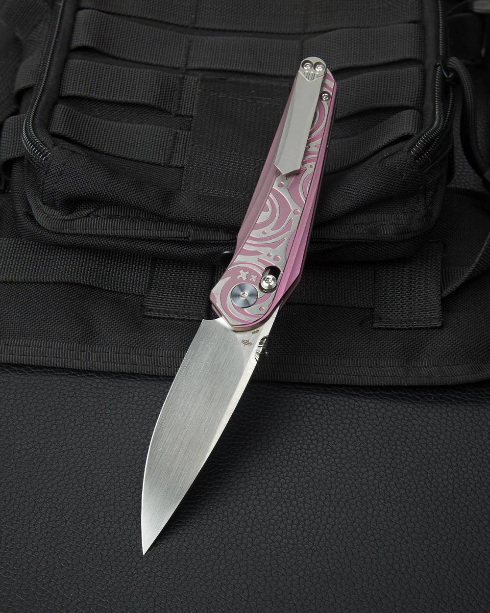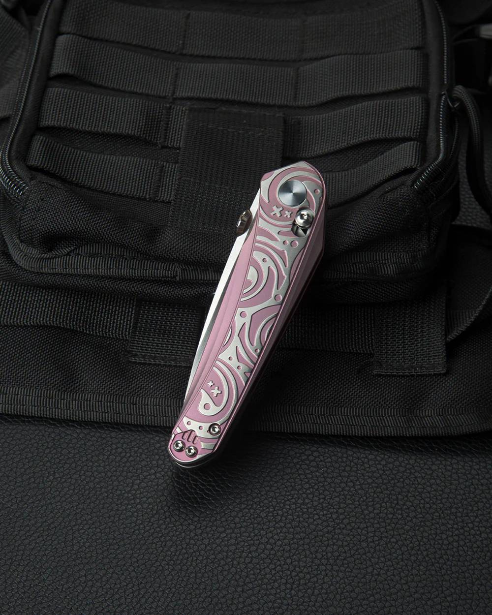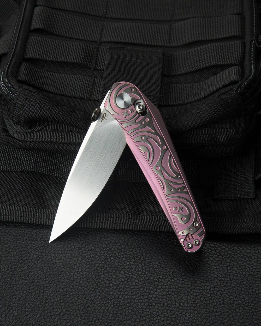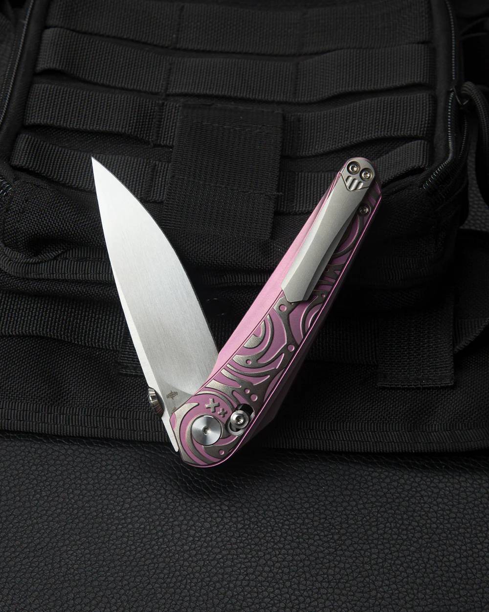 规格 刀刃材质:M390 刀刃表面处理:手工缎面 手柄材质:钛合金 描述:锁锁 手柄颜色:粉色 全长:8.05英寸(204.5毫米) 闭合长度:4.58英寸(116.3毫米) 刀刃长度:3.47英寸(88.2...