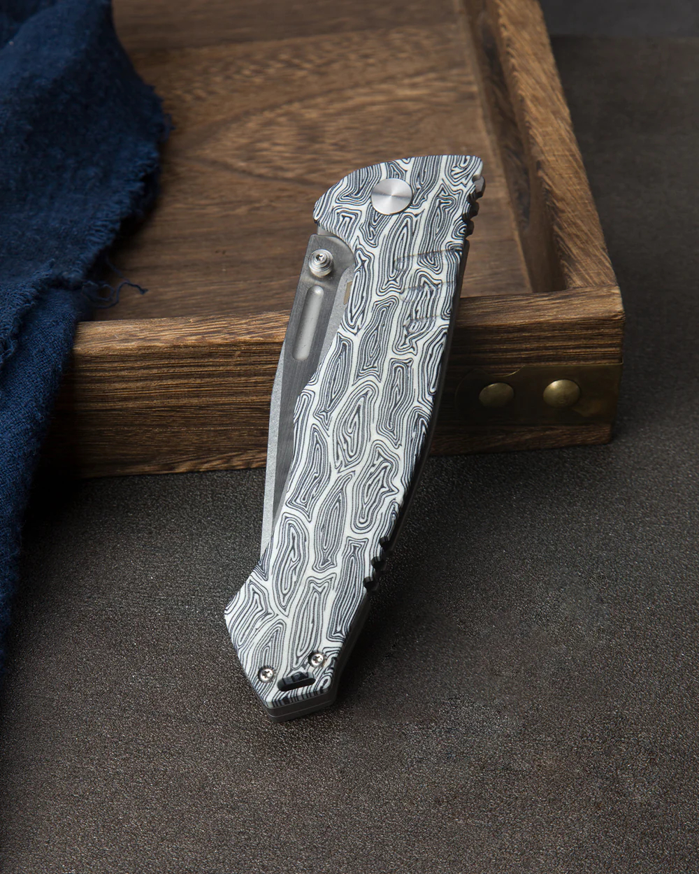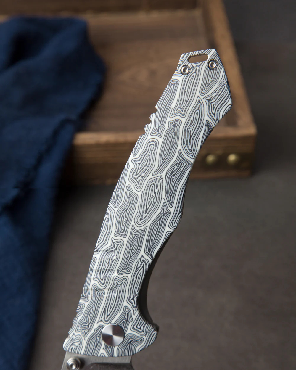 规格 刀刃材质:S35VN 刀刃表面处理:石洗+缎面 握把材质:黑色、白色、G10+钛合金 描述:帧锁定 握柄颜色:黑色+白色 全长:9.82英寸(249.5毫米) 闭合长度:5.63英寸(143毫米) 刀...