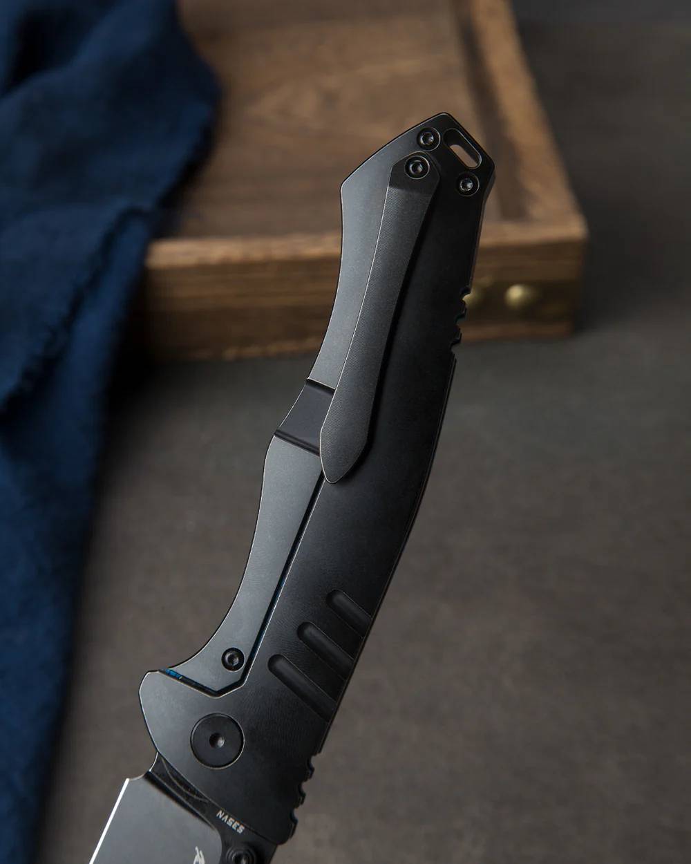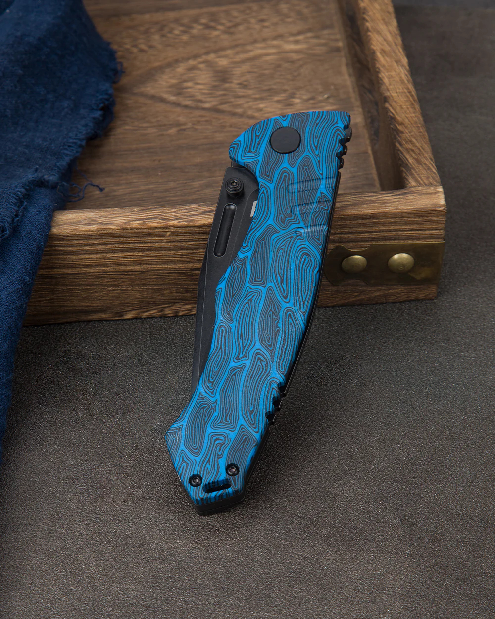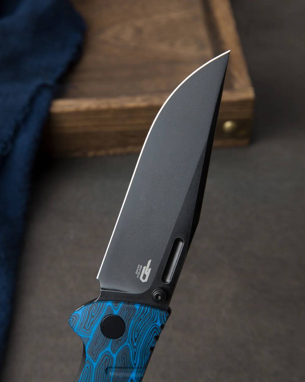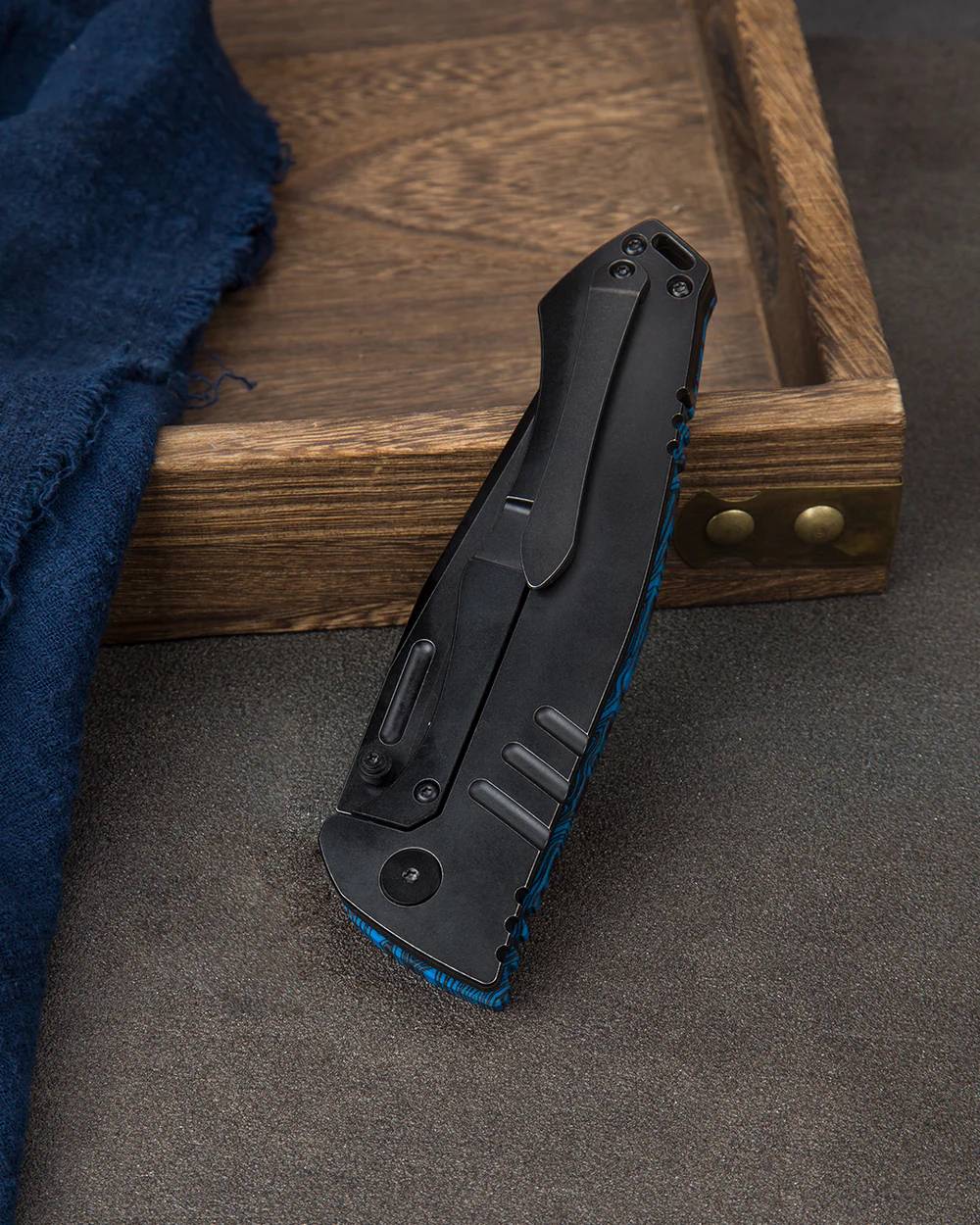 握把材质:黑蓝色 G10+钛合金