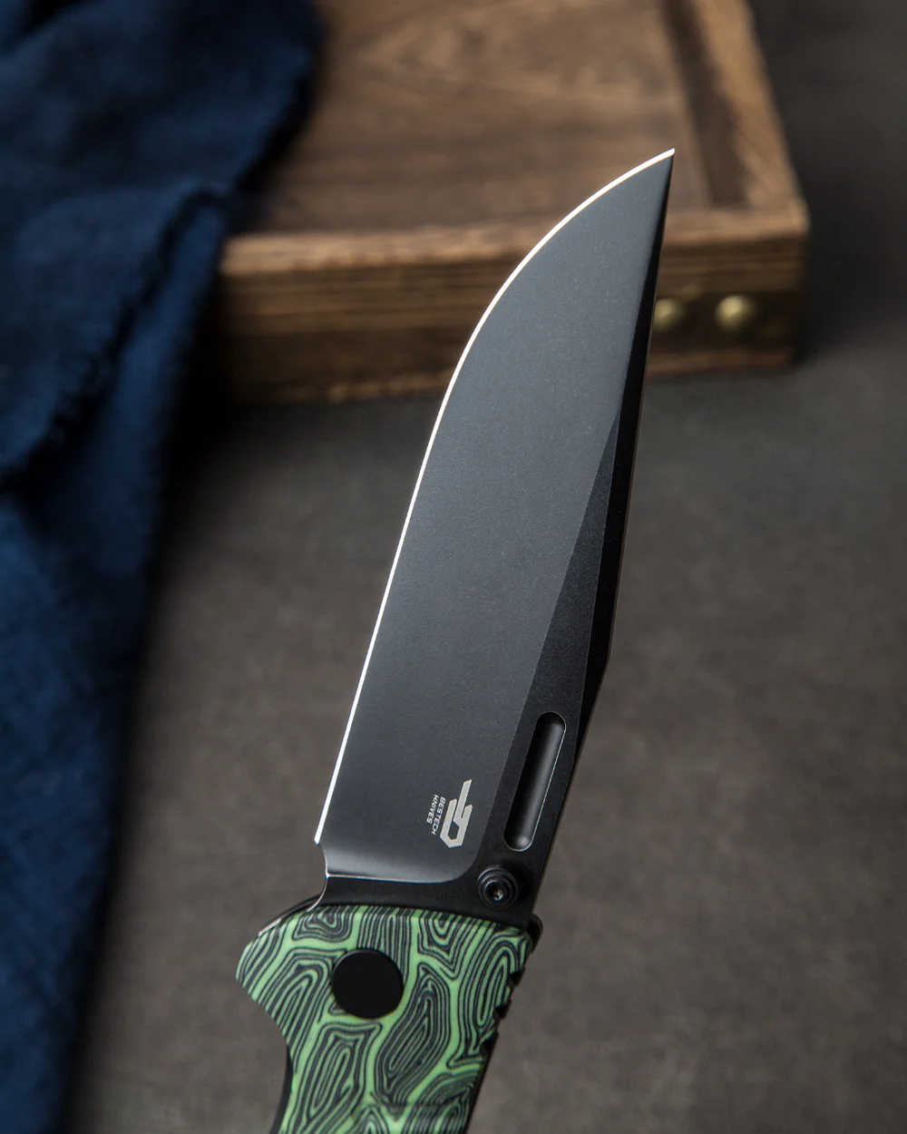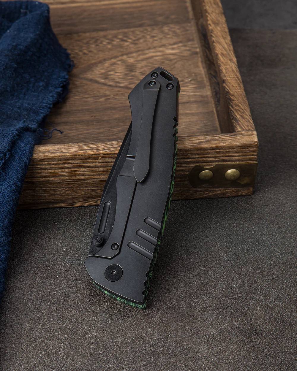 握把材质:黑绿色 G10+钛合金