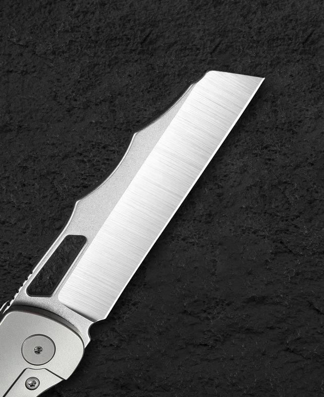 规格 刀身材质:Elmax 刀刃表面:手工磨石洗 +手工磨砂 握柄材质:钛+深绿帆布 Micarta 镶嵌 握柄颜色:珠喷 全长:8.07“(205mm) 闭合长度:4.5” (114.3mm) 刀刃长度:3.57“ (90.7mm) 刀刃厚度...