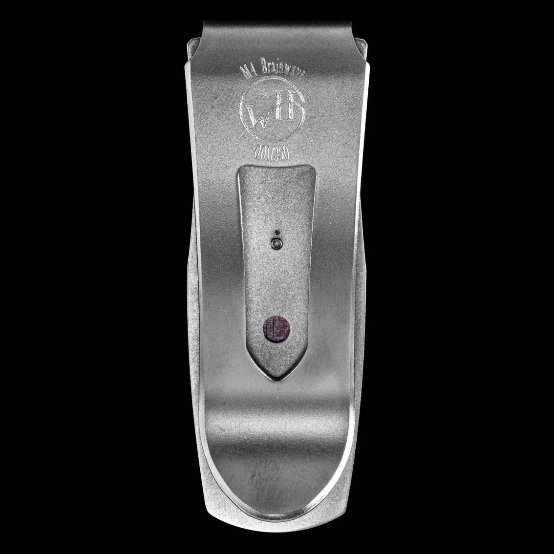 细节 这款法老“脑波”钱夹采用航空级钛金属框架,镶嵌由查德·尼科尔斯手工锻造并经热蓝处理的“脑波”大马士革钢。夹片由淬火不锈钢经机械加工和喷砂抛光而成,精美的雕刻图案在哑光背景的映衬下熠熠生辉...