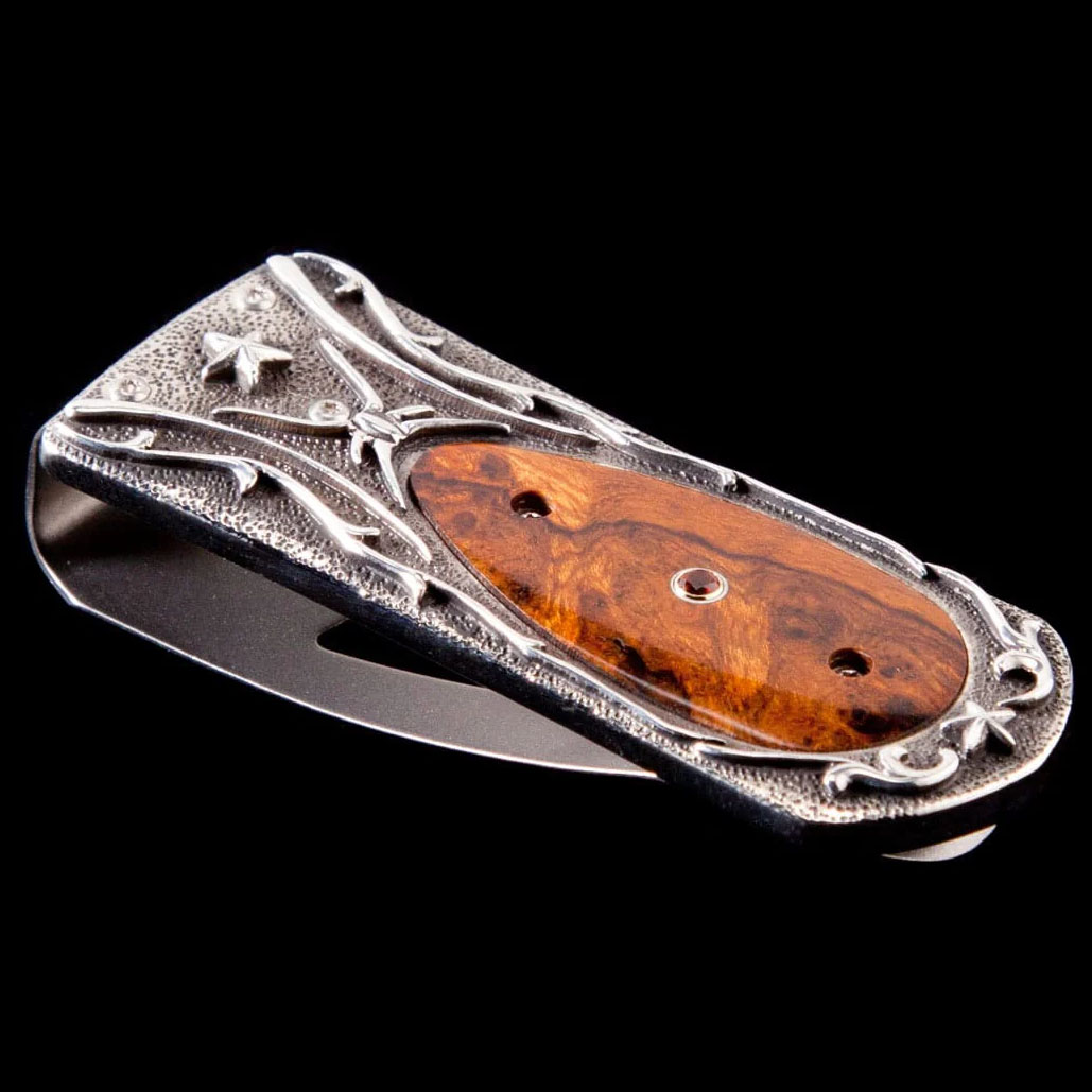 苏黎世“普韦布洛”钱夹是一款精美的钱夹,其框架采用手工雕刻的纯银打造,镶嵌沙漠铁木和一颗黄水晶宝石。 钱夹主体由淬火不锈钢经精密加工和抛光而成,哑光背景的衬托下,镌刻着精美的亮面图案。 “普韦布洛”钱夹不仅美观实用,更彰显个性,它采用威廉·亨利系列标志性的独特材质和锻造金属,是一件经久不衰的传世之作,值得您一生珍藏,并可传承给下一代。