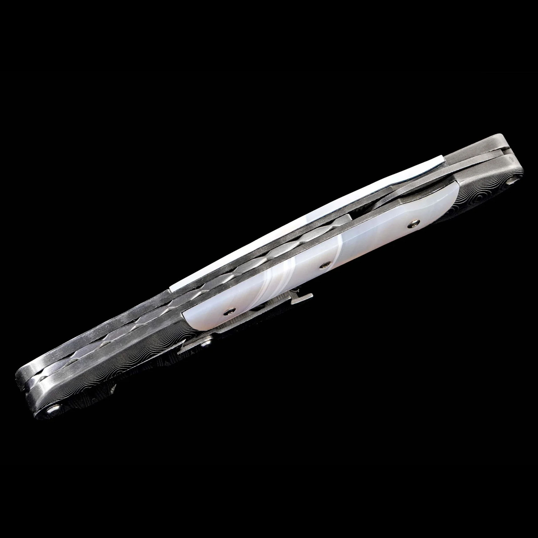 细节 独一无二的开瓶器 框架与切割器:手工锻造大马士革钢 手柄材质:缠丝玛瑙石 产品SKU:SC25002