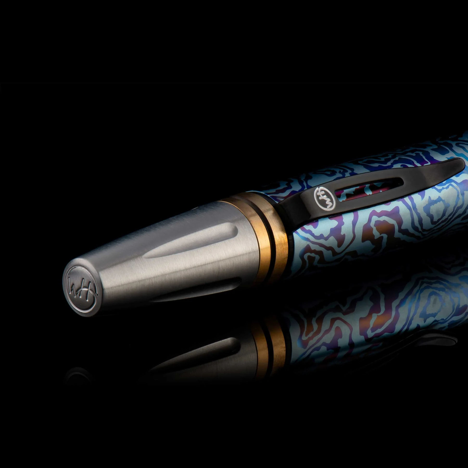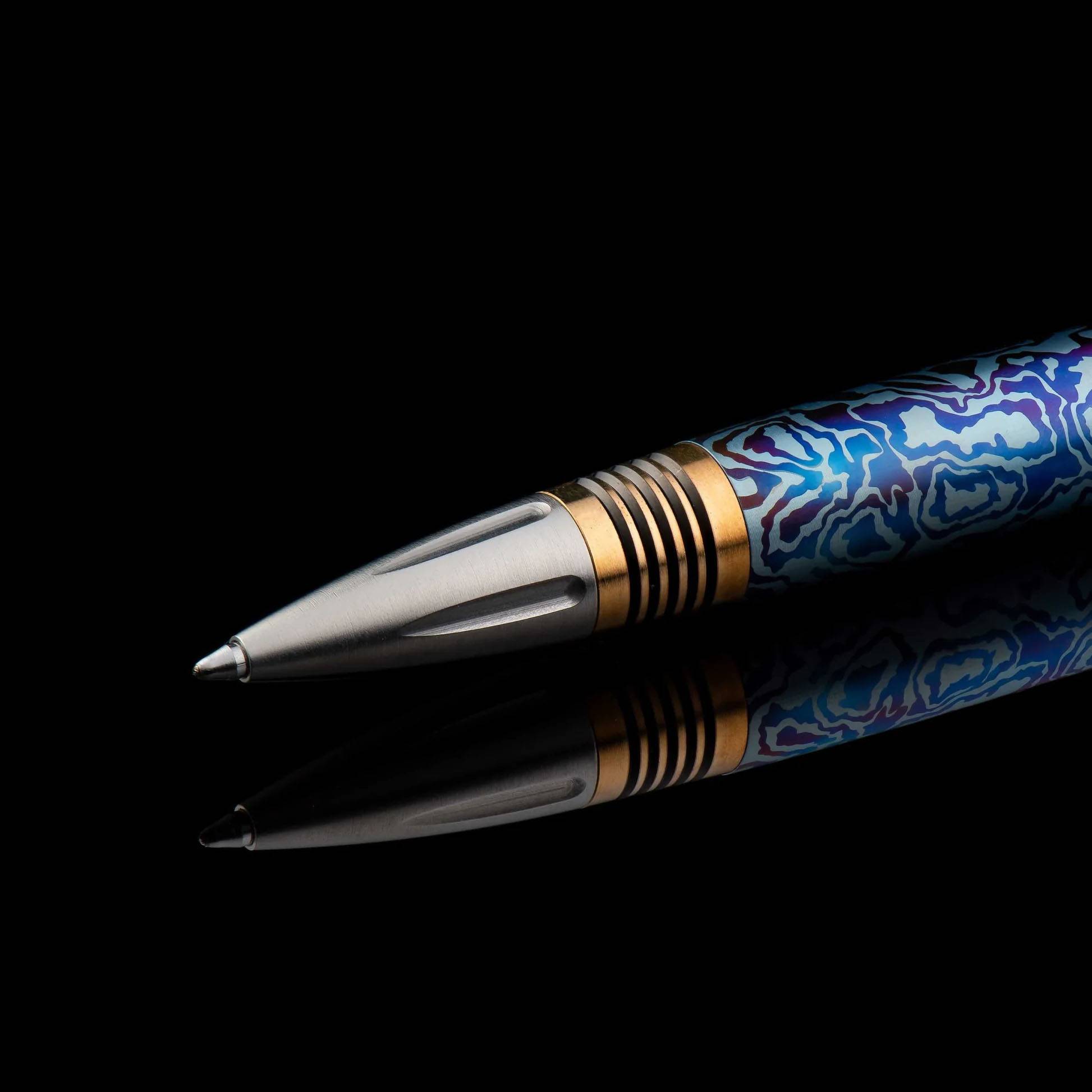 我们对经典商务钢笔的现代诠释——Caribe,其笔杆采用时尚的纹理阳极氧化钛金属手工雕刻打磨而成。独特而精美的钛金属纹理两侧饰以黄铜垫片,垫片上的深槽设计确保握持稳固。笔尖和笔帽部分则采用不锈钢材质,并饰以装饰艺术风格的细节。笔尖通过顶部旋转机制显露,并配备德国进口的高品质笔芯,书写流畅。Caribe 笔身厚实而不失优雅,是一款可世代相传的书写工具。