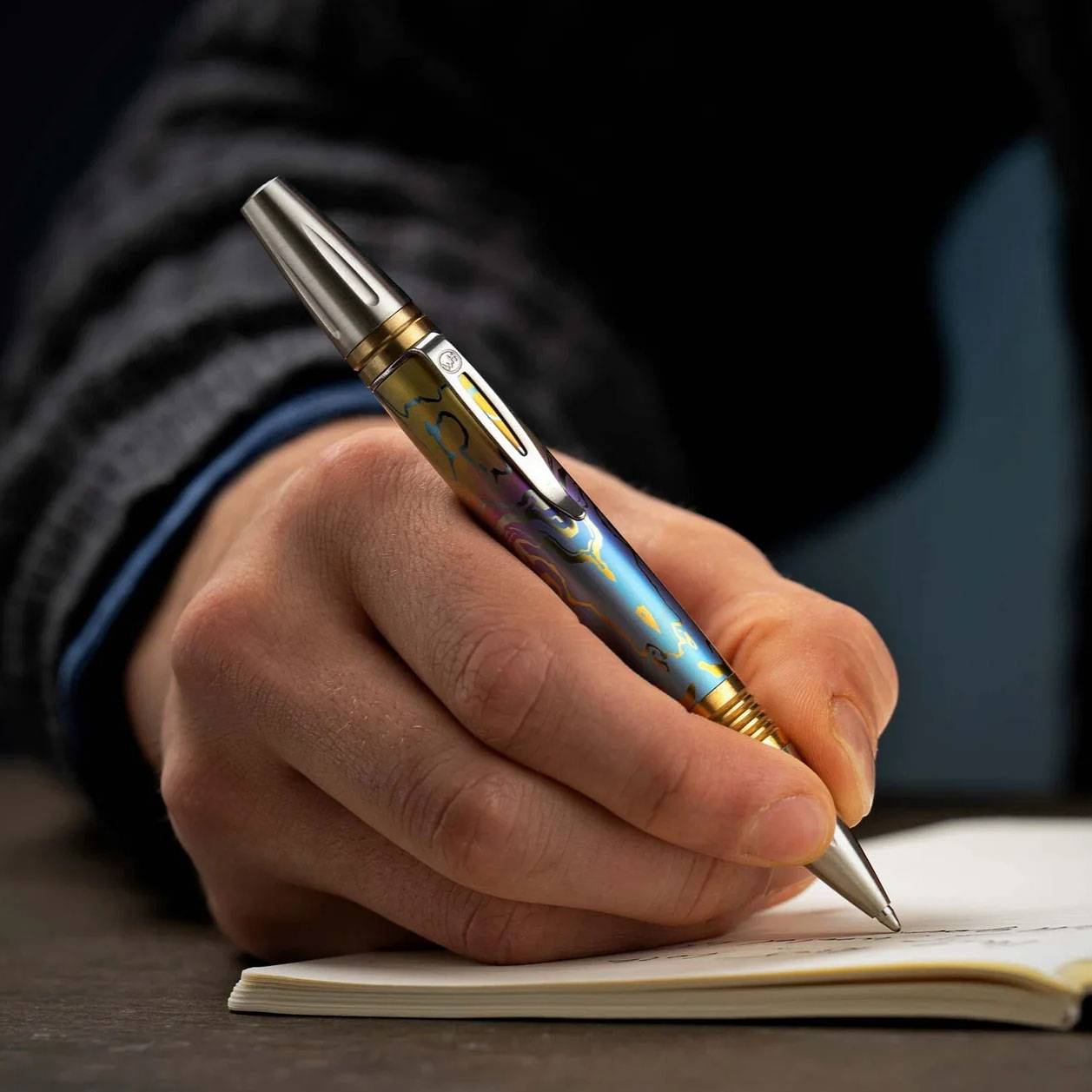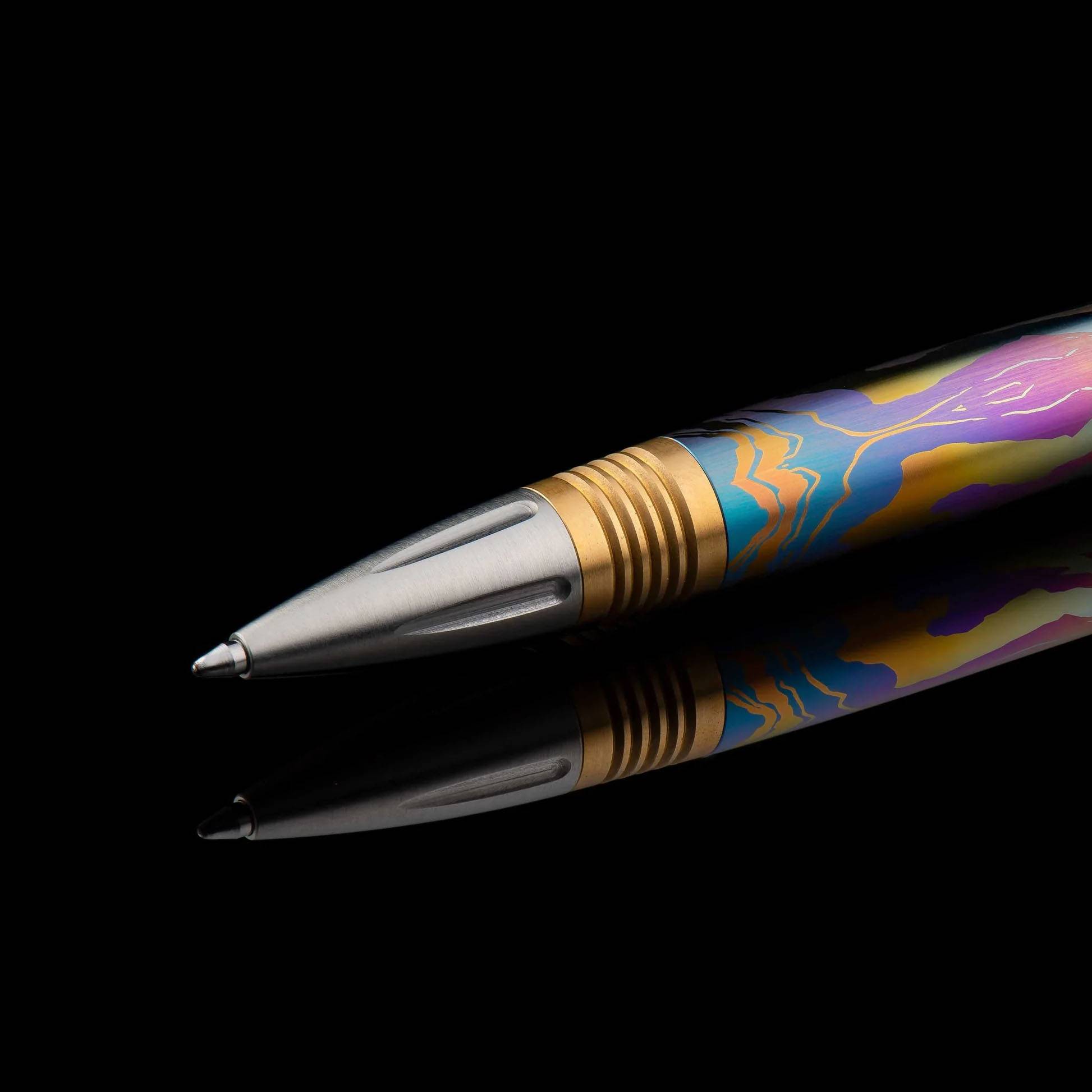 我们对经典商务钢笔的现代诠释——Caribe,其笔杆采用时尚的纹理阳极氧化钛金属手工雕刻打磨而成。独特而精美的钛金属纹理两侧饰以黄铜垫片,垫片上的深槽设计确保握持稳固。笔尖和笔帽部分则采用不锈钢材质,并饰以装饰艺术风格的细节。笔尖通过顶部旋转机制显露,并配备德国进口的高品质笔芯,书写流畅。Caribe 笔身厚实而不失优雅,是一款可世代相传的书写工具。
