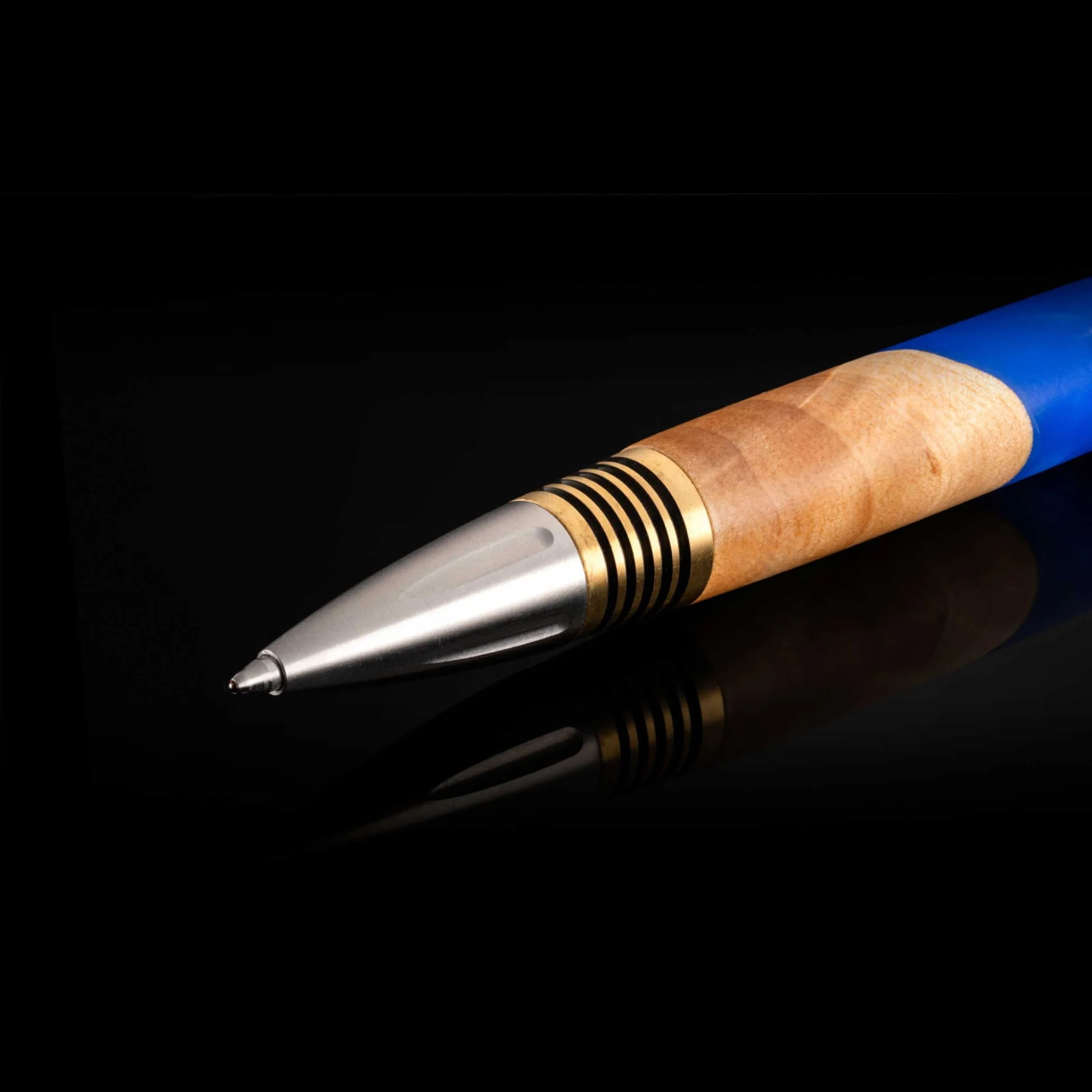 我们对经典商务钢笔的现代诠释——Caribe,采用木材与树脂混合材质打造的笔杆。独特的笔杆两侧饰以黄铜垫片,垫片上的深槽设计确保握持稳固。笔尖和笔帽部分则以不锈钢材质打造,并点缀以装饰艺术风格的细节。笔尖通过顶部旋转机制显露,并配备德国进口的高品质笔芯,书写流畅。Caribe 笔身厚实而不失优雅,是一款可世代相传的书写工具。