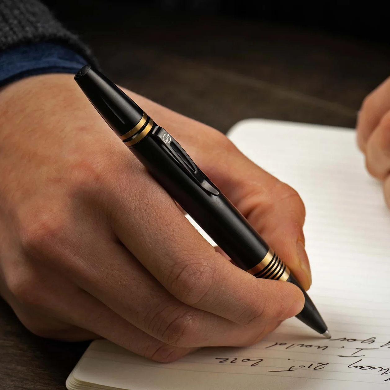 我们对经典商务钢笔的现代诠释——Caribe,采用钛金属手工雕刻打磨而成。卓越而独特的钛金属笔身两侧饰以黄铜垫片,垫片上的深槽设计确保握持稳固。笔尖和笔帽部分则以不锈钢打造,并饰以装饰艺术风格的细节。笔尖通过顶部旋转机制显露,并配备德国进口的高品质笔芯,书写流畅。Caribe 笔身厚实而不失优雅,是一款可世代相传的书写工具。