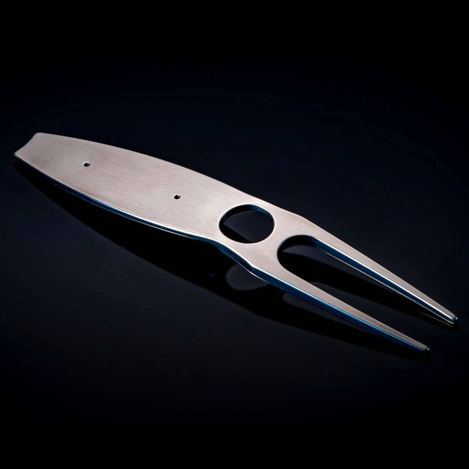 提升你的球技!或者至少提升你在球场上的格调,这款来自 William Henry 的精美球痕修复器将助你一臂之力。“奥克兰山”球痕修复器采用航空级钛合金实心加工而成,经阳极氧化处理呈现美丽的蓝色,并镶嵌有福特石(又名“汽车城玛瑙”)。超大的倒角孔为你的拇指提供了一个绝佳的支撑点,方便使用时更好地控制(而且看起来也很酷)。