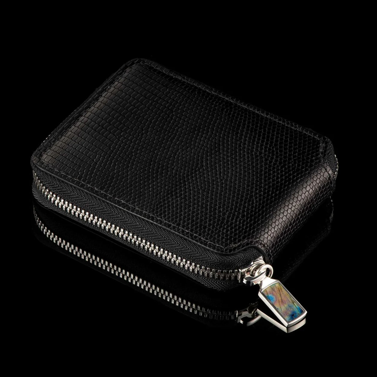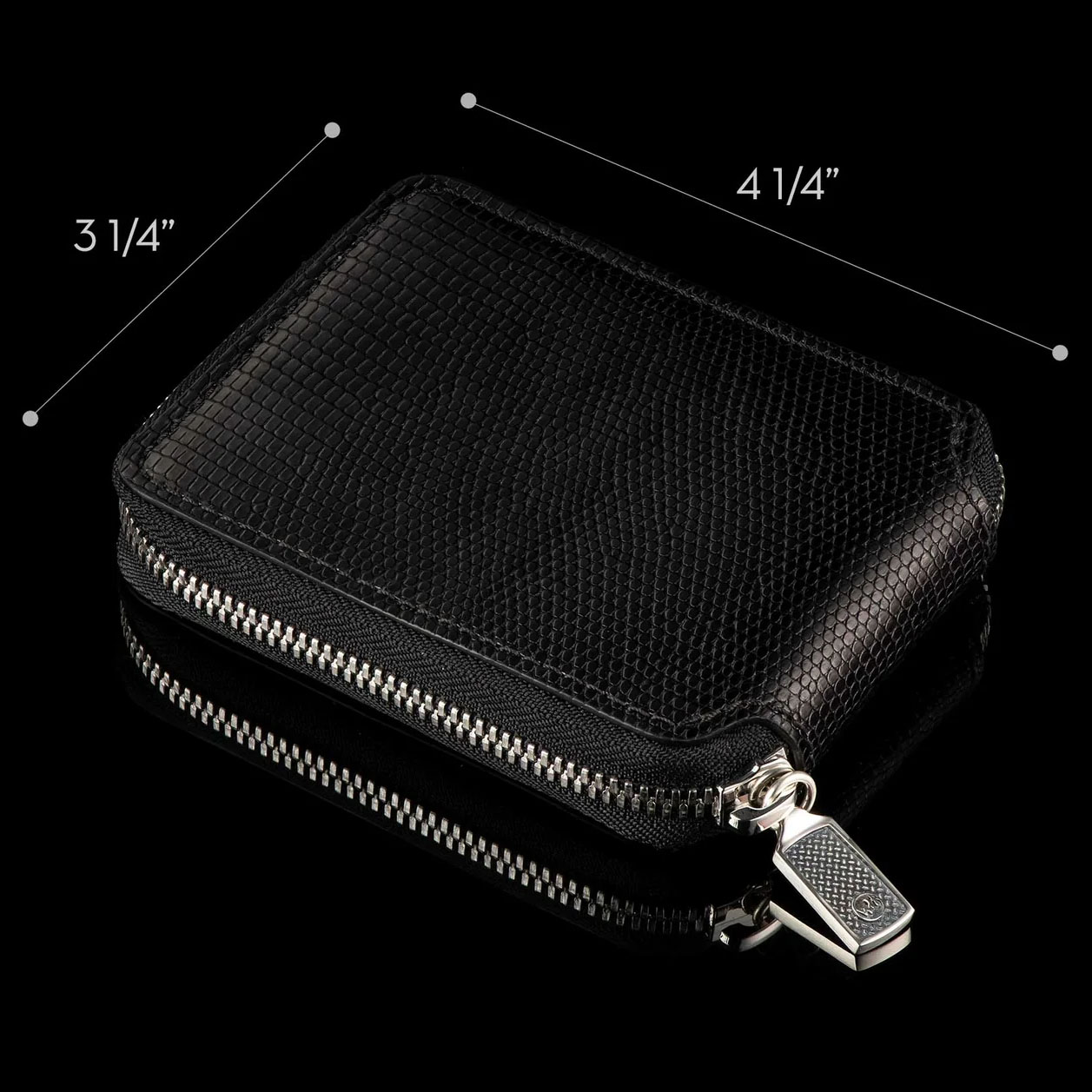 蒙特卡洛皮革由佛罗里达州著名的Leatherwks皮革厂精心制作。Leatherwks是一家拥有四代传承的家族企业,致力于在精美的全粒面皮革上打造精湛的工艺。黑色蜥蜴皮制品采用德国理查德·霍夫曼制革厂的优质皮革精心制作而成,内外均采用精美的全粒面皮革,做工精良。