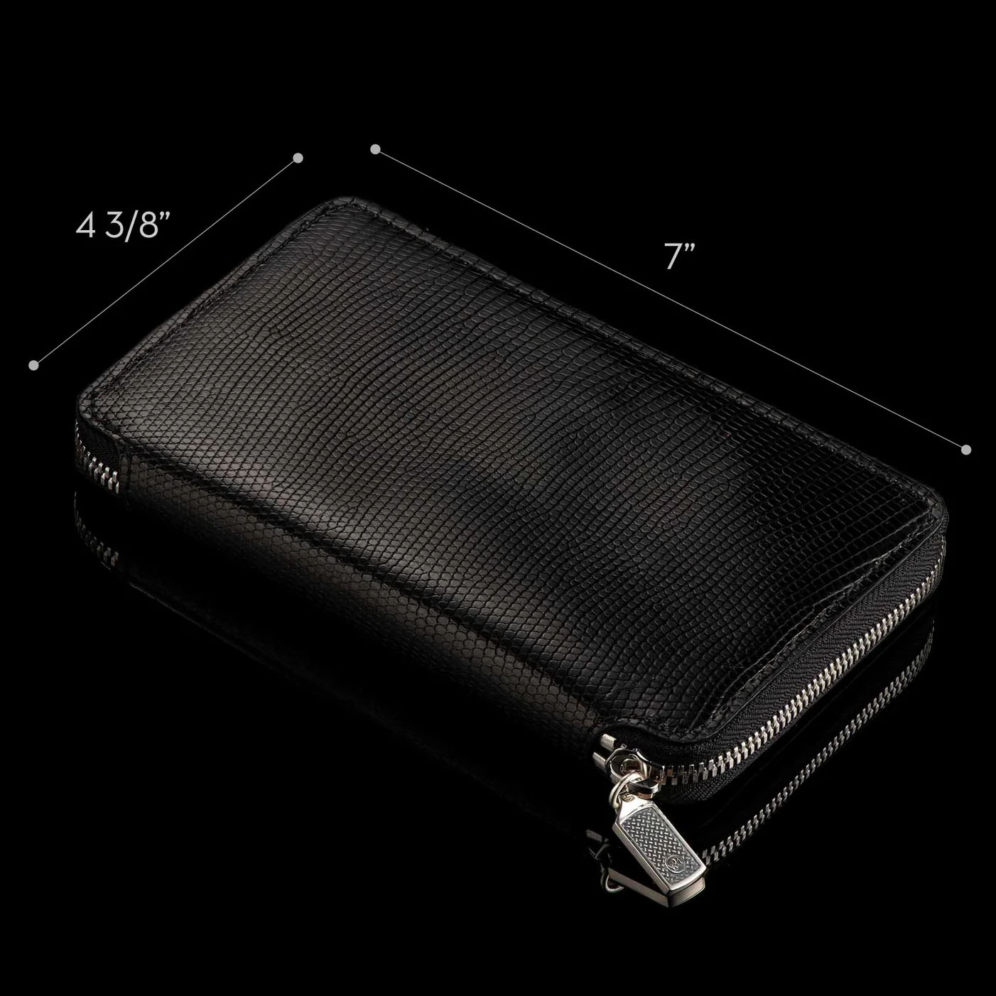 蒙特卡洛皮革由佛罗里达州著名的Leatherwks皮革厂精心制作。Leatherwks是一家拥有四代传承的家族企业,致力于在精美的全粒面皮革上打造精湛的工艺。黑色蜥蜴皮制品采用德国理查德·霍夫曼制革厂的优质皮革精心制作而成,内外均采用精美的全粒面皮革,做工精良。